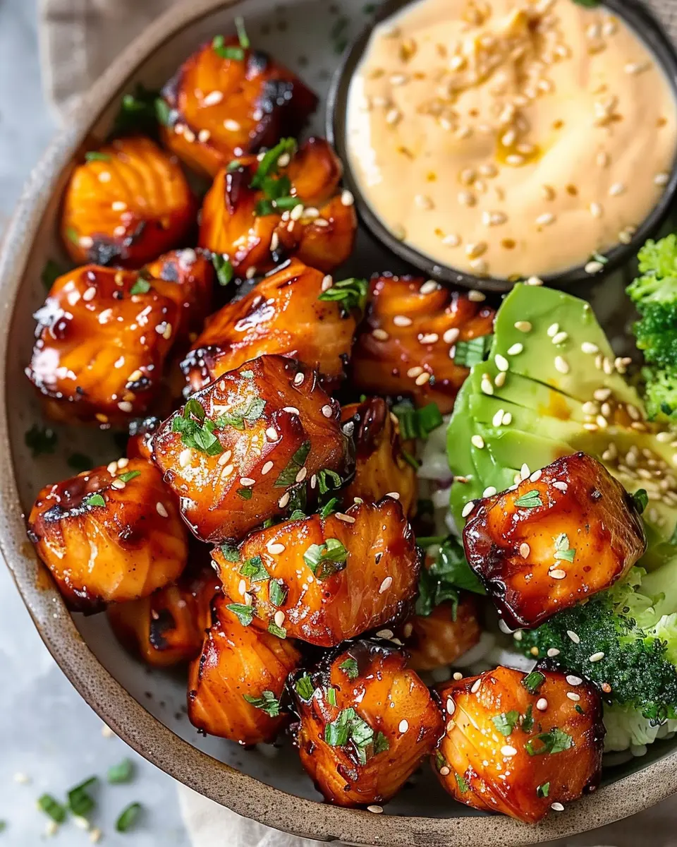 The sauce is key to elevating your Bang Bang Salmon Bites. To get it just right, balance flavors in your sauce. Hereโ€™s how: