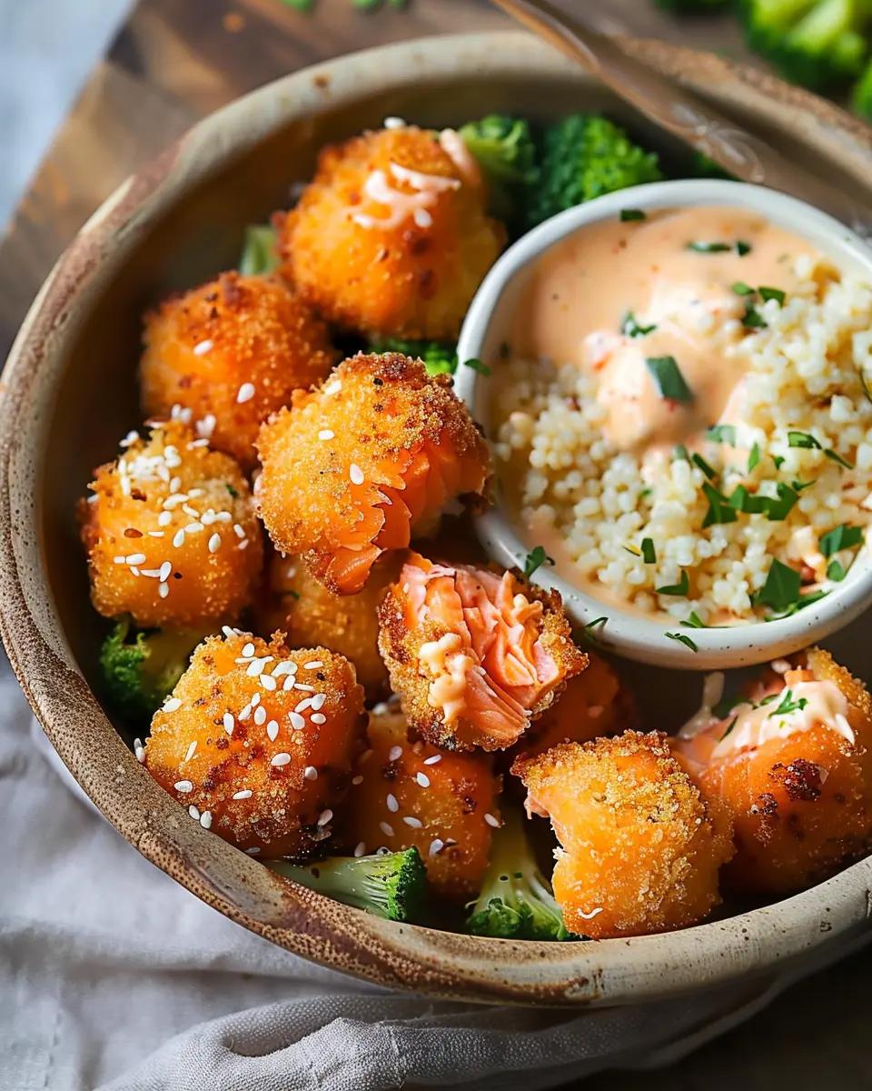 • Air fryer: Preheat your air fryer to around 375ยฐF (190ยฐC). Coat the salmon bites in your favorite breading, then place them in a single layer. Cook for about 10-12 minutes, flipping halfway through for maximum crispiness.