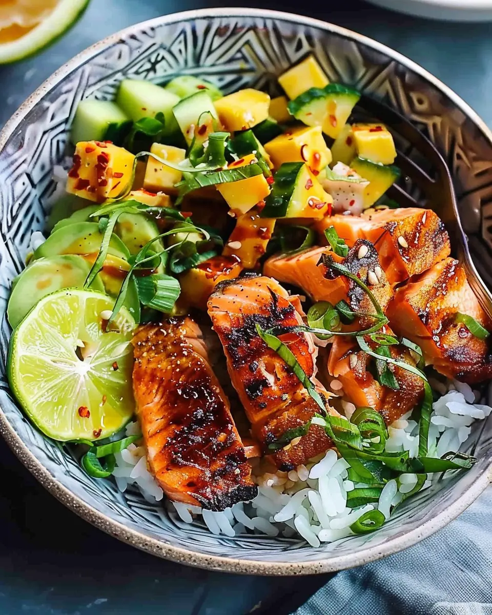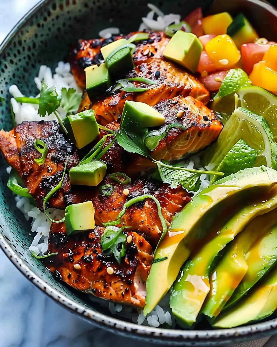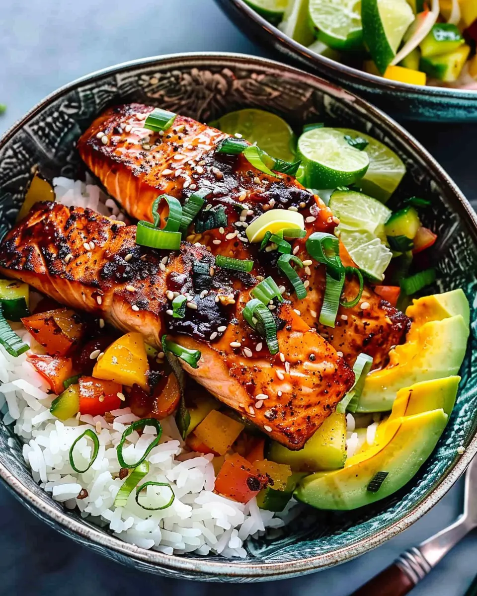 Discover the irresistible flavors of BBQ Salmon Bowls, a perfect blend of juicy salmon, fresh vegetables, and a delicious homemade sauce.