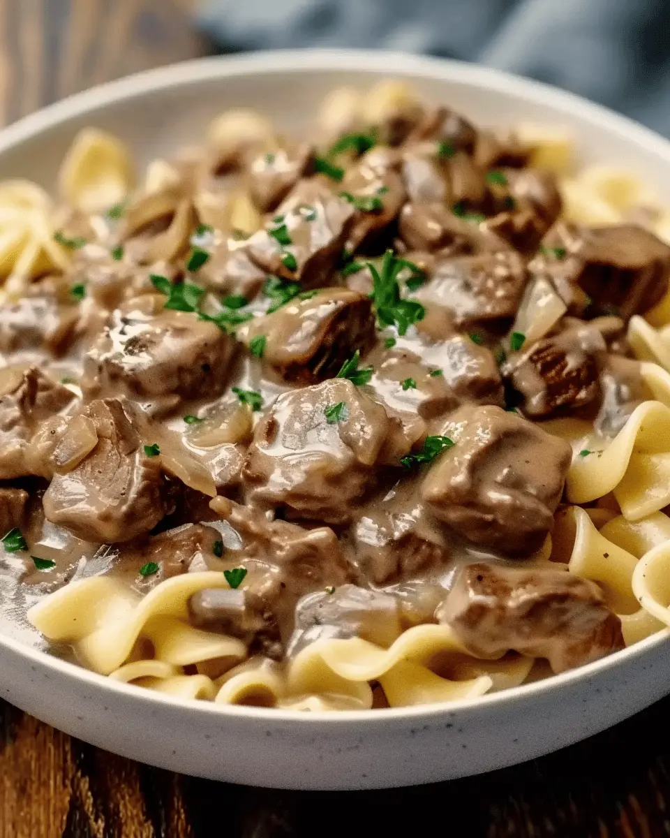 To serve, consider garnishing with fresh parsley for that splash of color. This beef stroganoff with egg noodles is not just a meal; it’s a comforting hug in a bowl. Enjoy, and happy cooking!