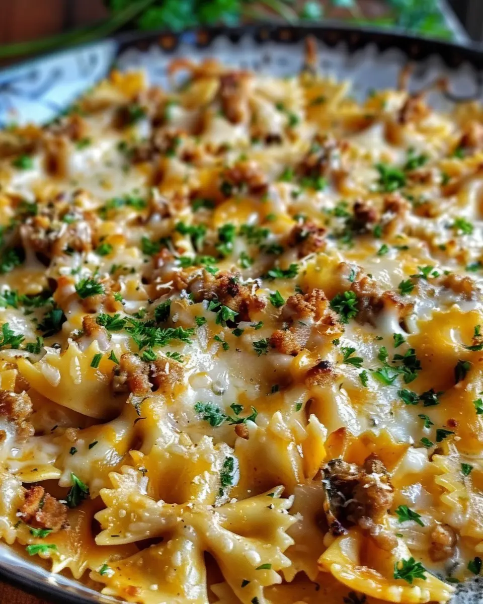 Youโll love the creamy texture brought by the cream cheese, complemented by Turkey Bacon and tender bowtie pasta. It’s comforting yet unique, making it a crowd-pleaser for both family and friends. Trust me; once you try these delightful bowties, theyโll become a staple in your home! For more inspiration, check out resources on quick pasta recipes from Food Network or Bon Appรฉtit.