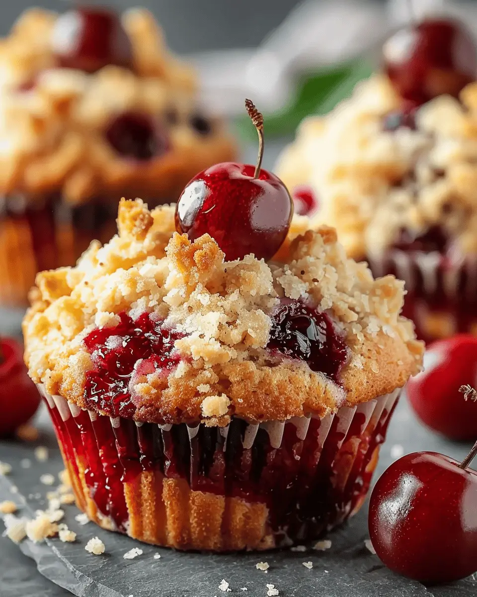 Imagine biting into a warm muffin with pockets of juicy cherries and a crumbly, buttery topping, all while your favorite morning playlist dances in the background. Itโs like having your cake and eating it too!