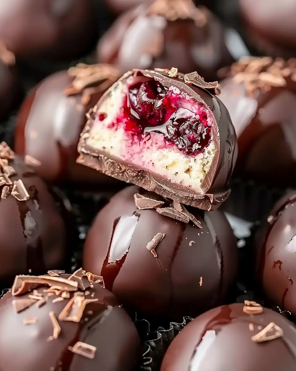 - Ingredients: Use the same base recipe as your Chocolate Cherry Cheesecake Truffles, replacing the cherry filling with fresh or frozen raspberries.