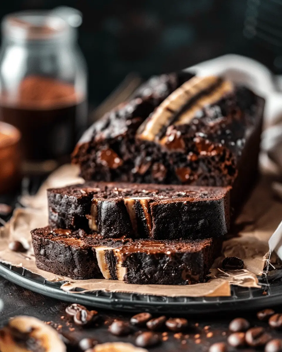 A deliciously moist banana bread infused with rich chocolate and a hint of espresso, perfect for coffee lovers.