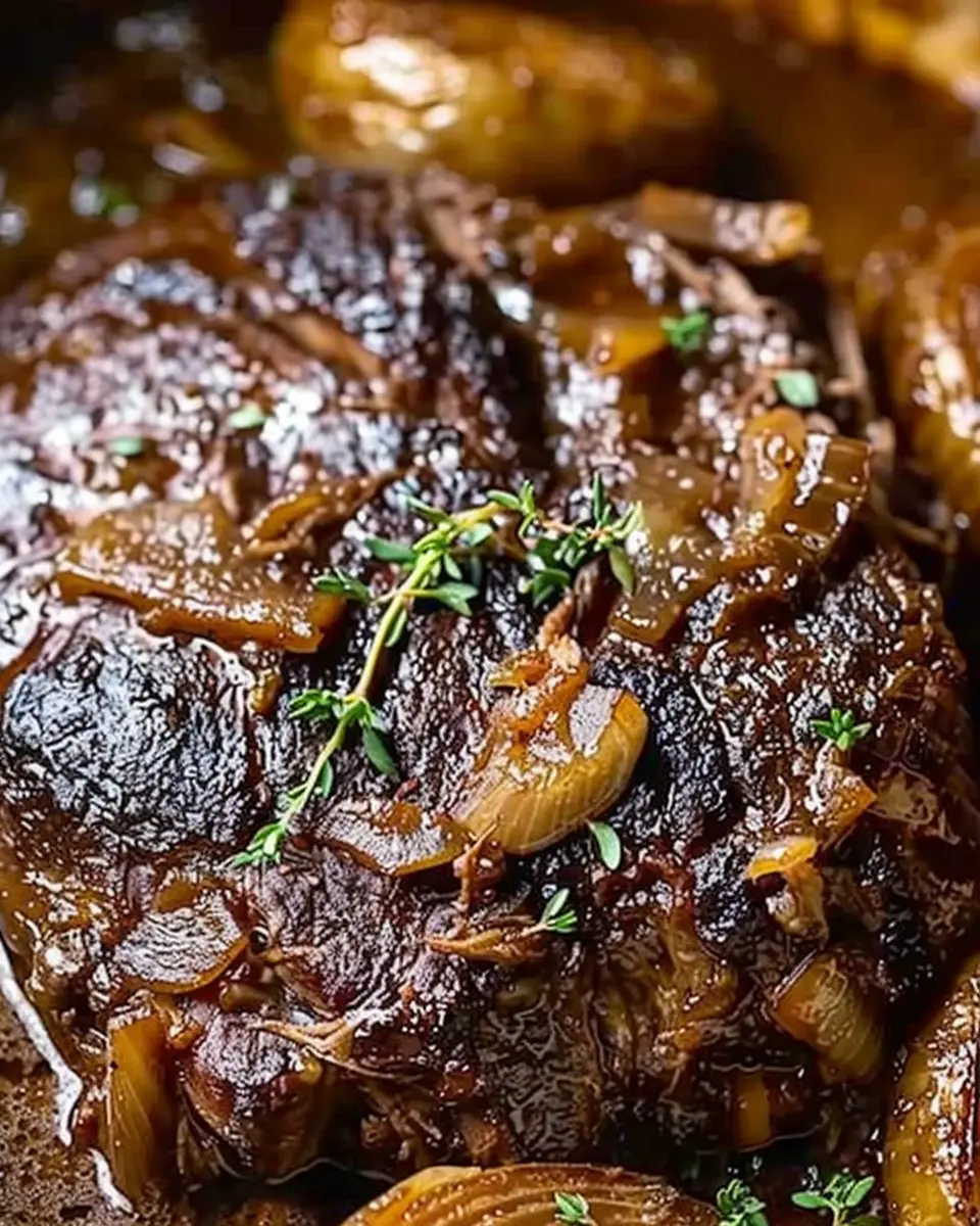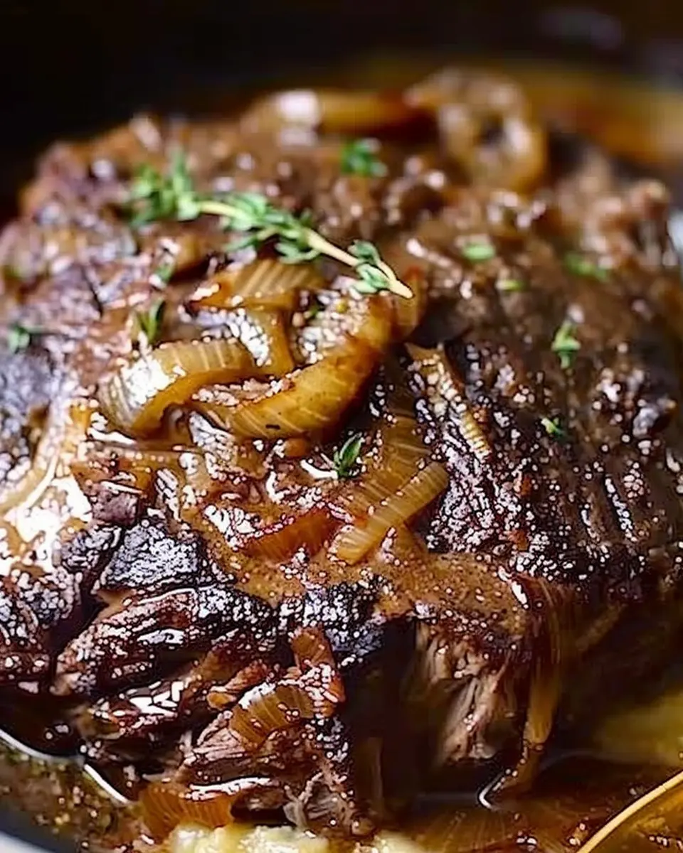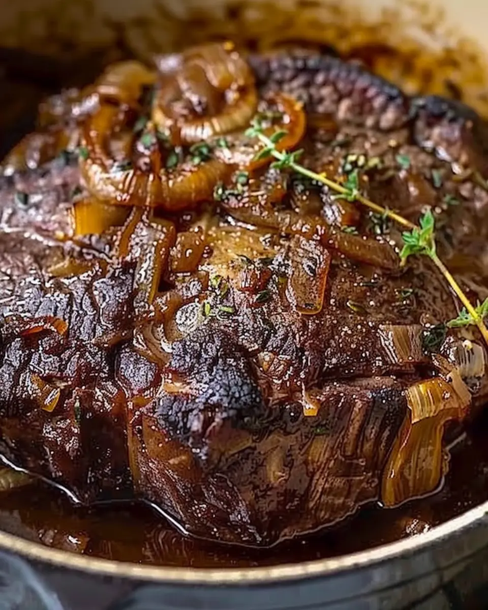Keywords: Comforting French Onion Pot Roast, pot roast, turkey bacon