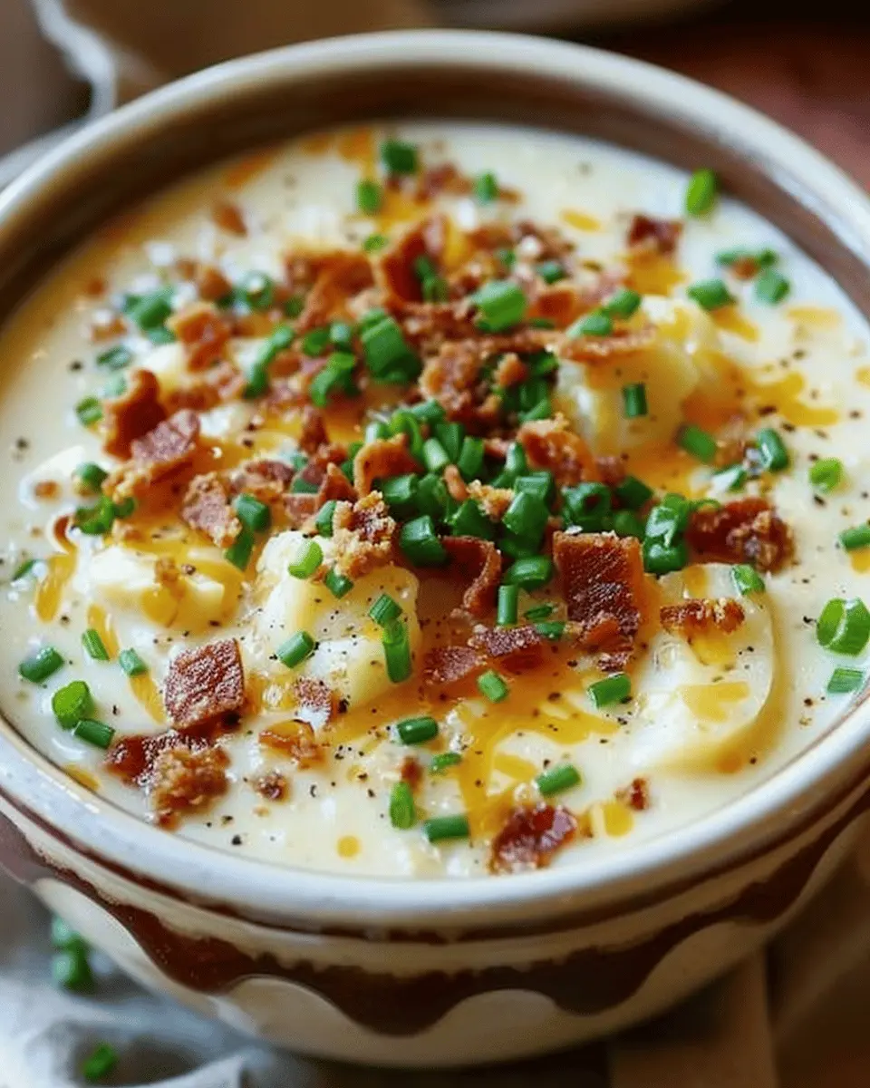 PrintCreamy Loaded Baked Potato Soup with Turkey Bacon and Chicken Ham Secrets