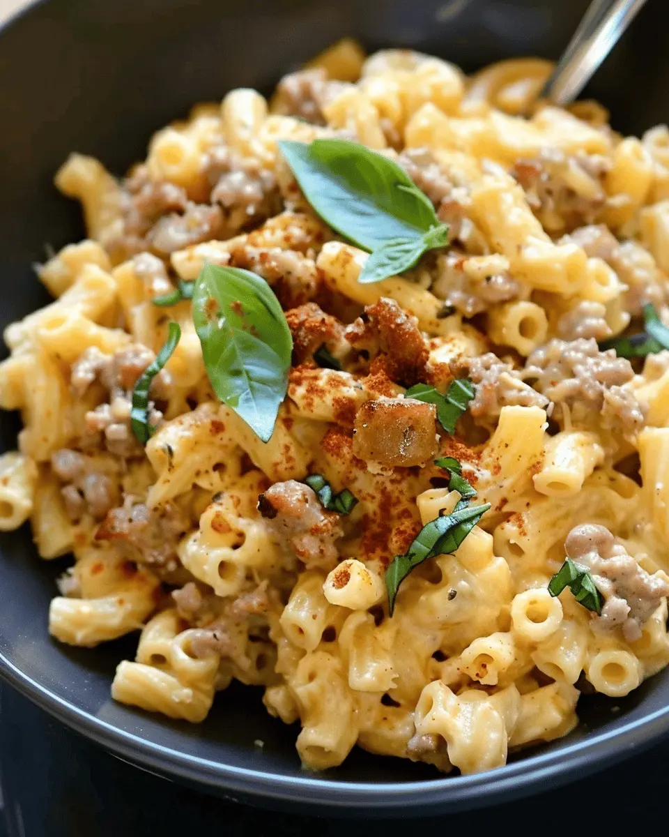 Once you’ve prepped everything, you’ll spend about 20 to 25 minutes cooking. This includes sautéing your turkey bacon, cooking the ditalini pasta until perfectly al dente, and blending it all together with that silky, creamy sauce.