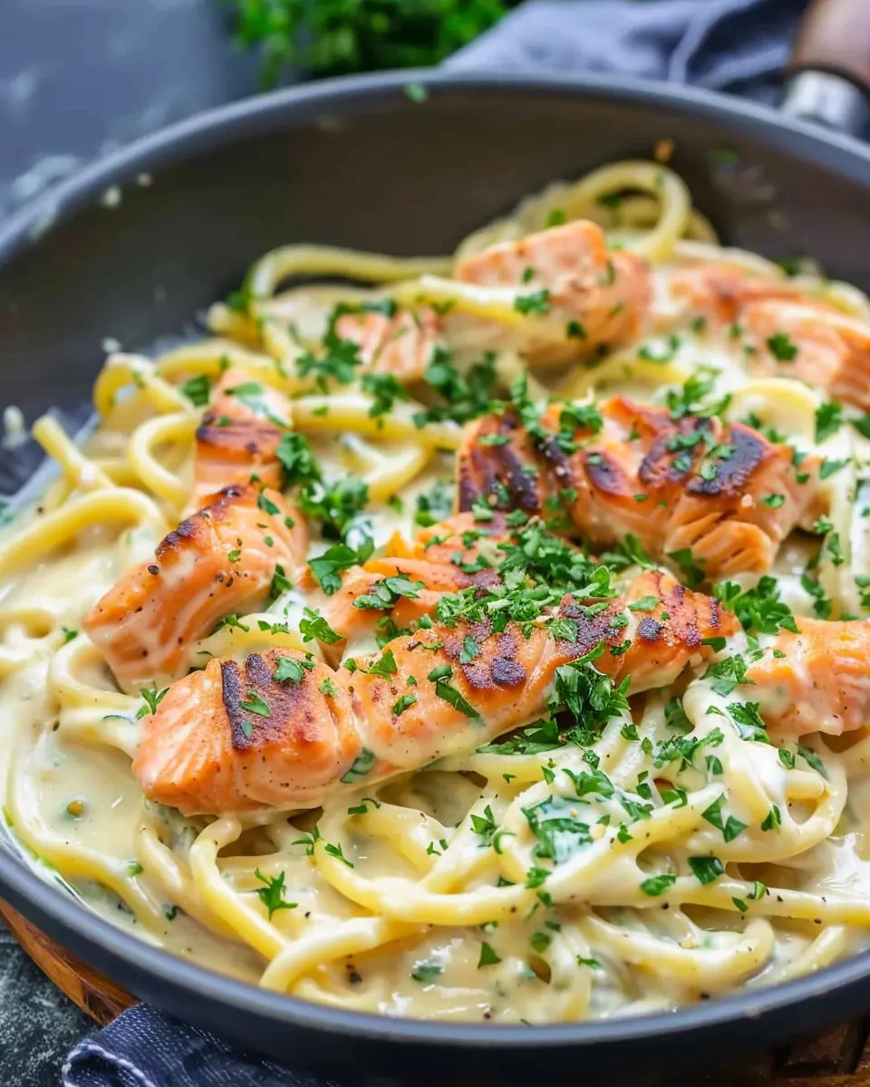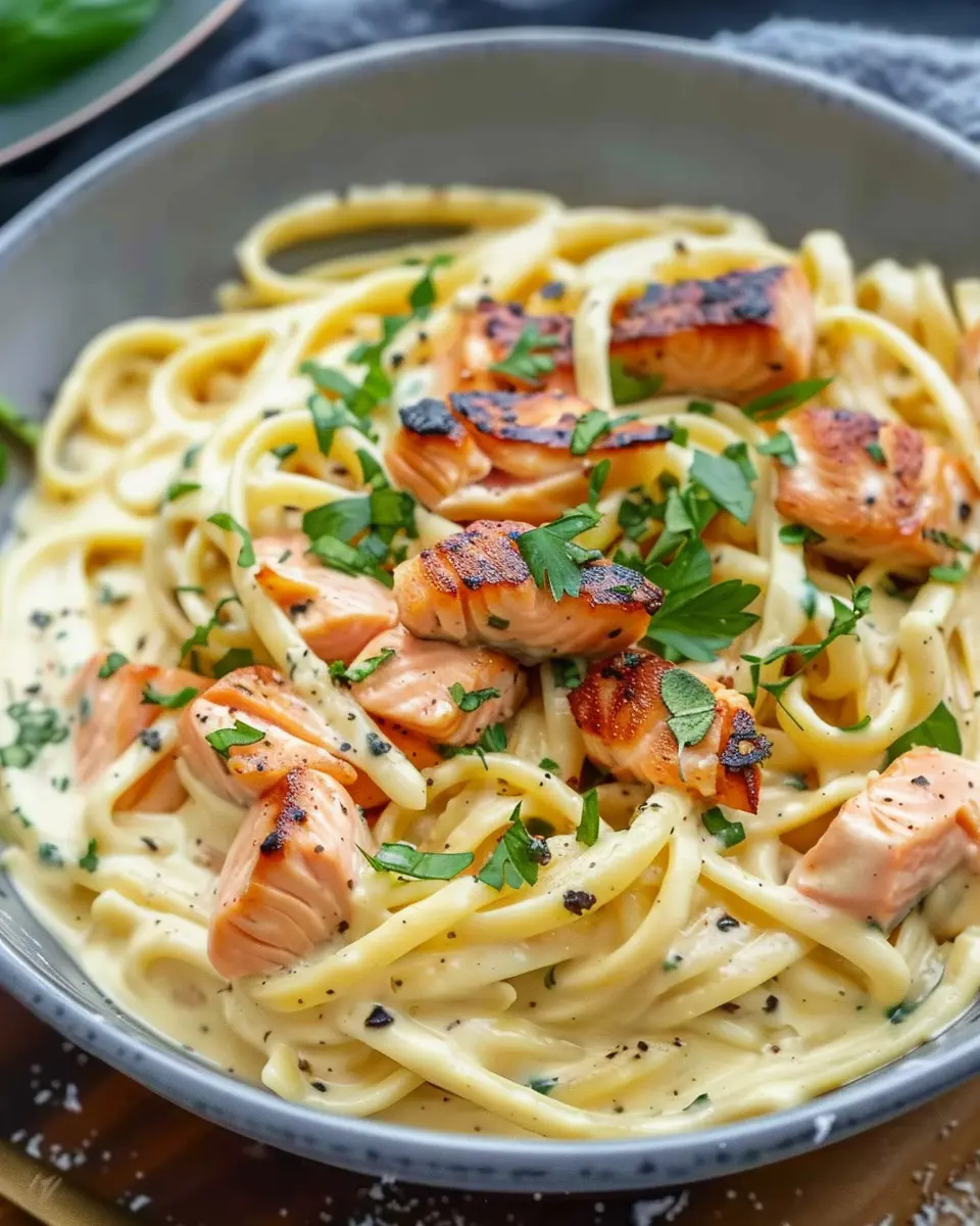 Indulge in the creamy goodness of salmon pasta that will warm your heart and satisfy your cravings.