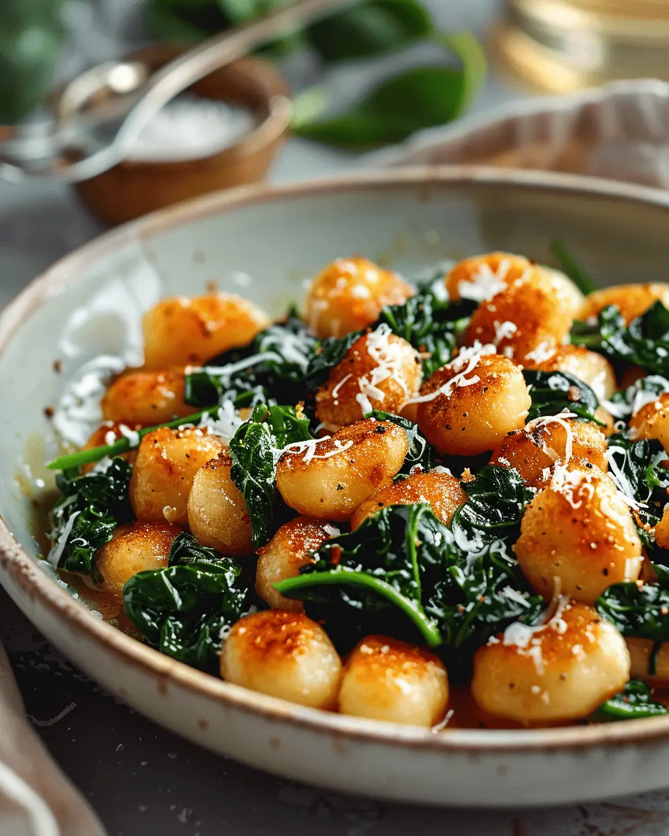 In summary, crispy gnocchi with spinach beautifully marries textures and flavors, creating a dish that’s not only comforting but also visually appealing. The golden, crispy exterior of the gnocchi contrasts perfectly with the tender, vibrant spinach, making each bite an absolute delight. Plus, it’s versatileโ€”perfect as a hearty main or a side dish!