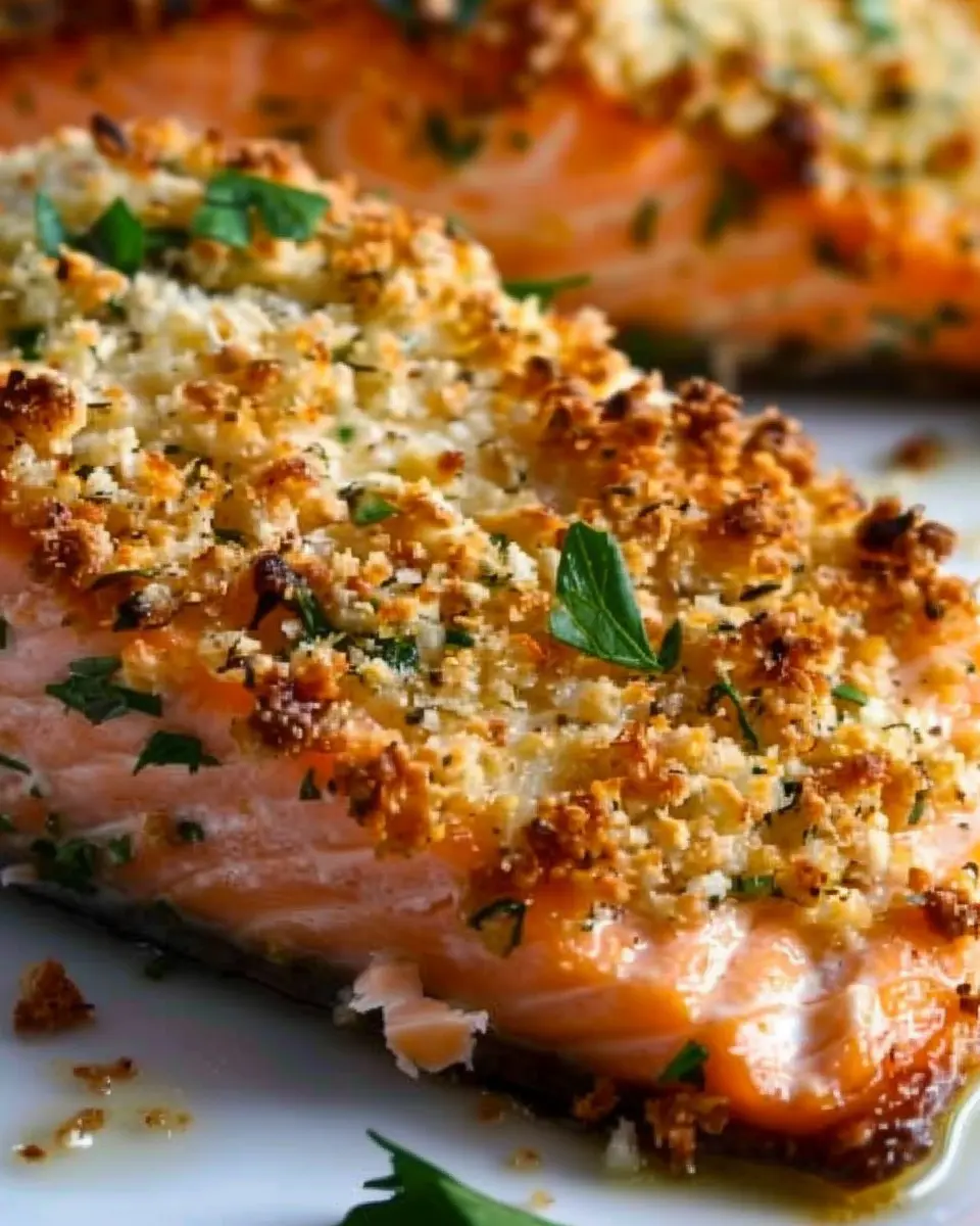 • Oil matters: Lightly coat the salmon with olive oil before adding the crust. This helps achieve a beautiful, golden-brown color.