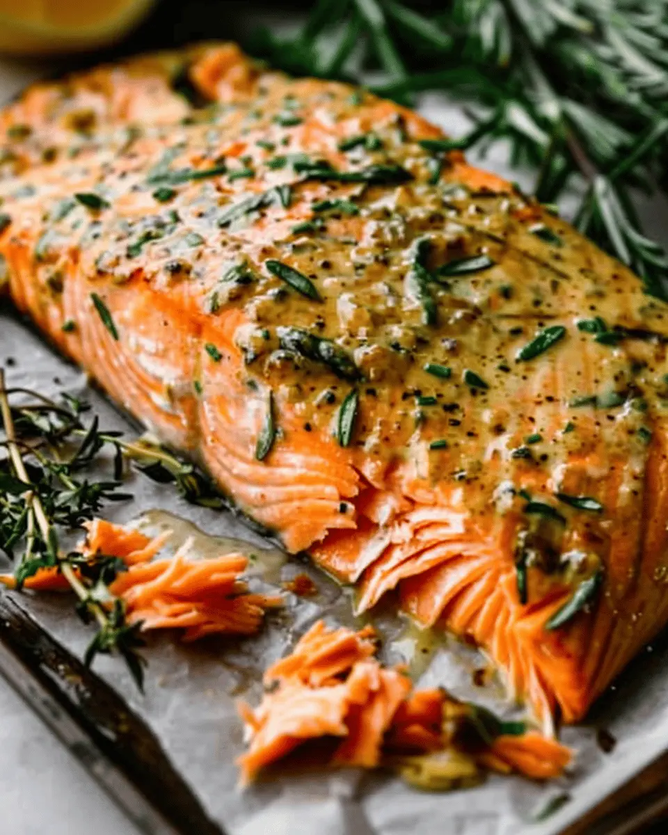 Keywords: Dijon Baked Salmon, Easy Salmon Recipe, Quick Dinner Recipe