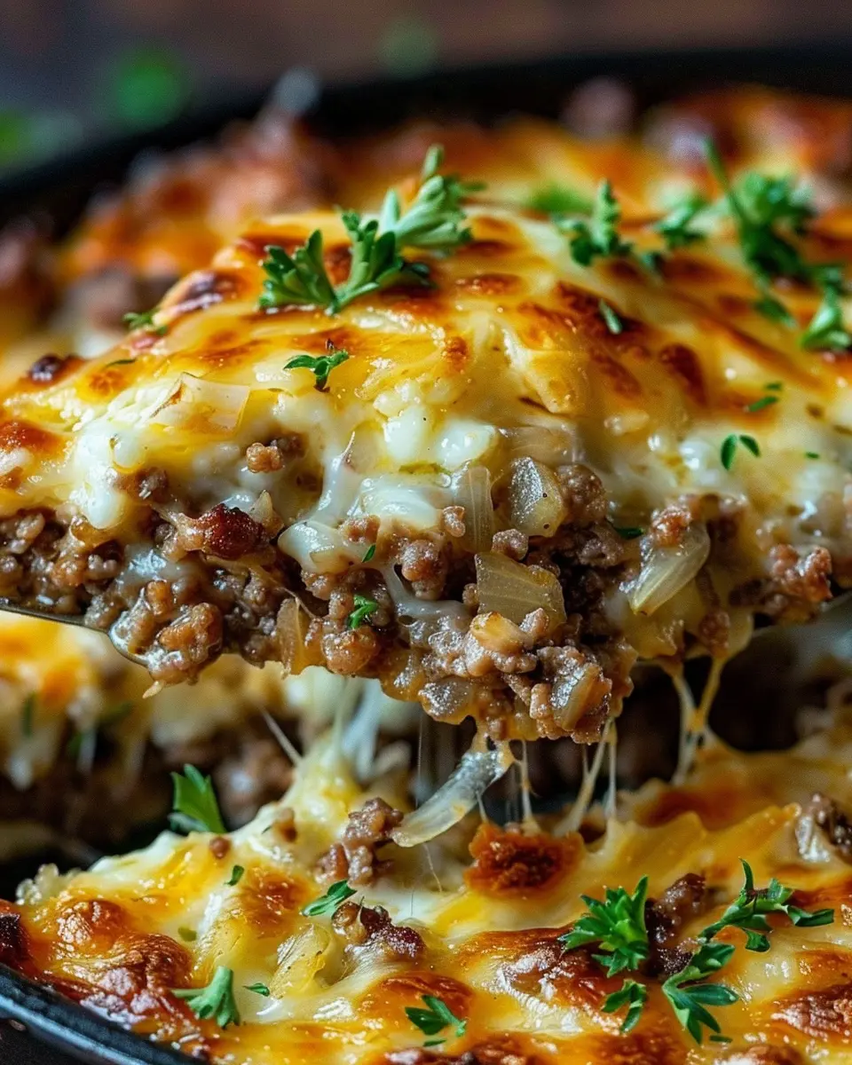 Delightfully savory French Onion Ground Beef Skillet is the perfect comfort food, combining rich flavors with simple ingredients.