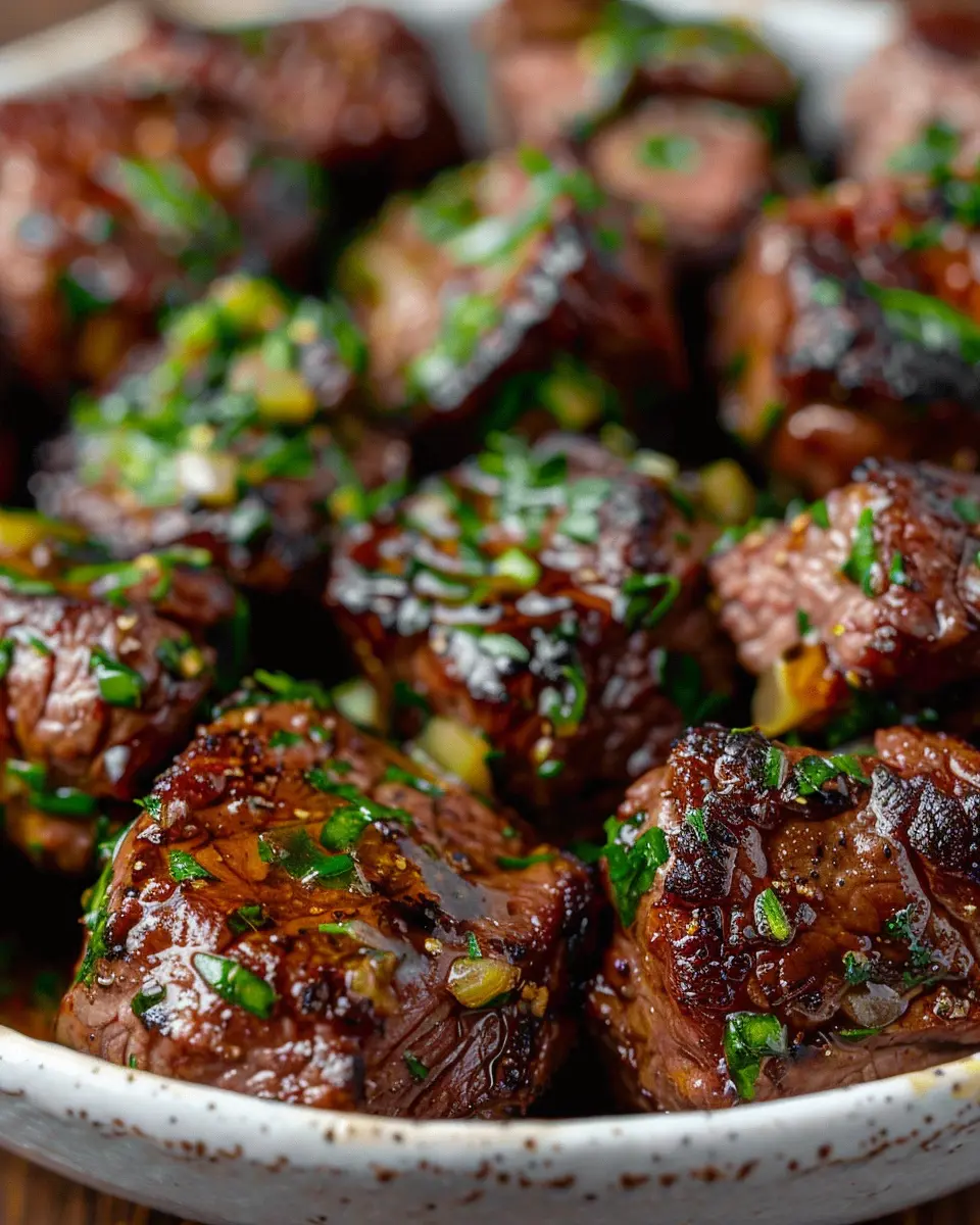 Indulge in the rich flavors of these Garlic Butter Steak Bites, perfect for your dinner gatherings.