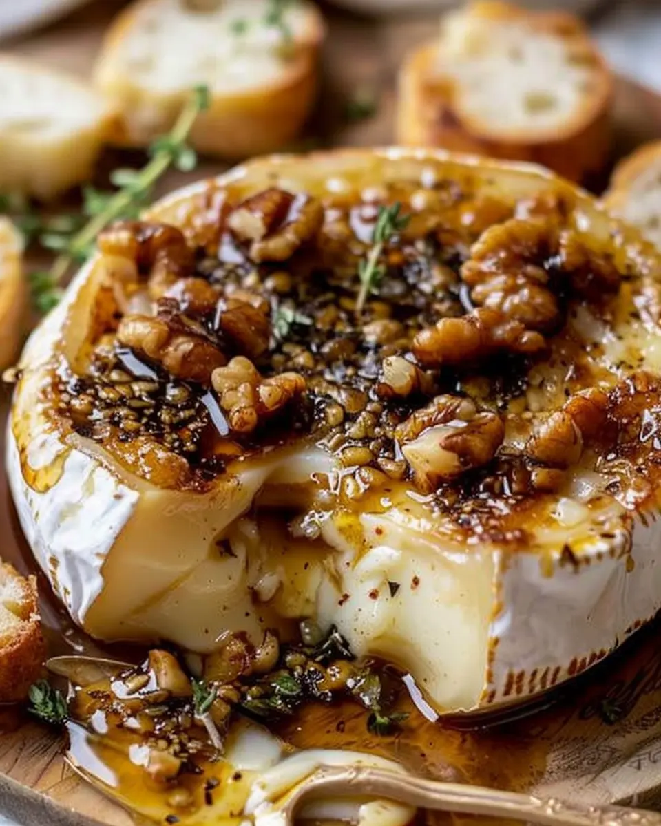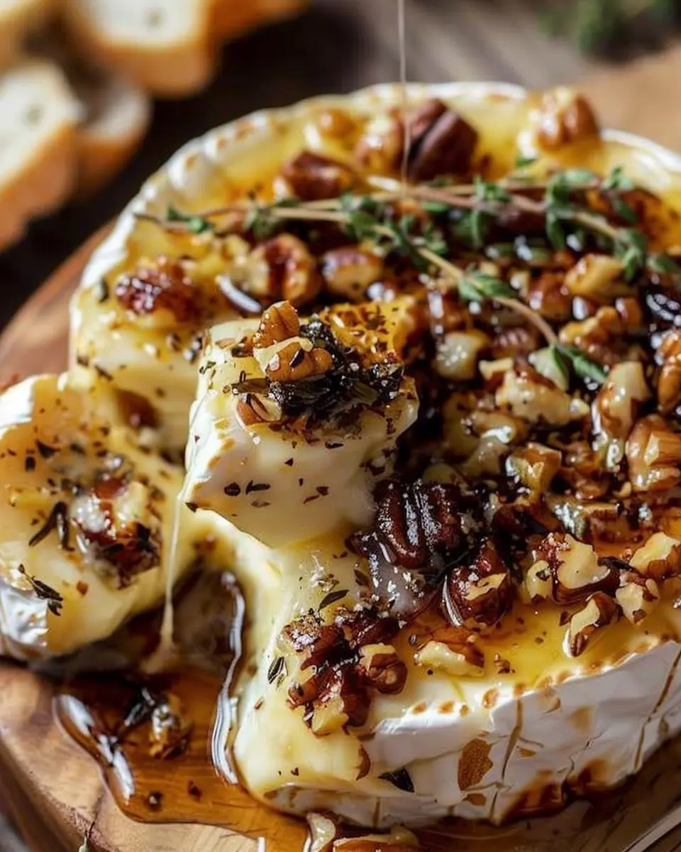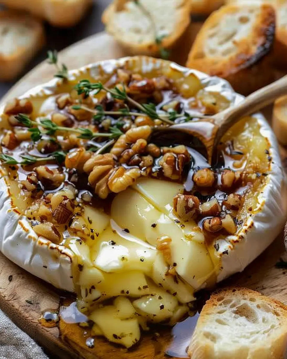 Savory Toppings: Drizzle honey or maple syrup over your gooey baked brie for a touch of sweetness. Adding nuts, such as walnuts or pecans, creates a delightful crunch.