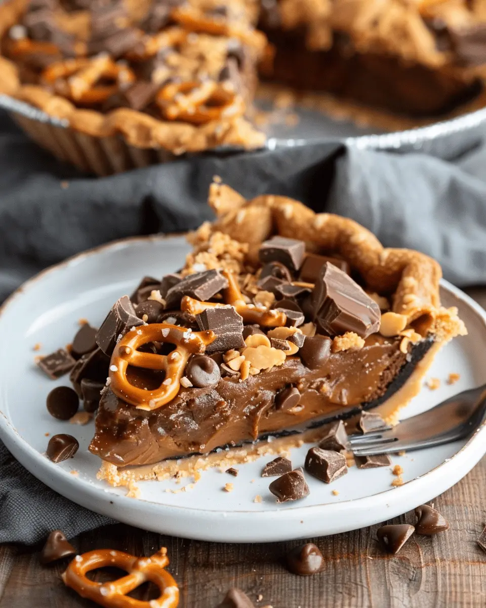 Indulge in the ultimate dessert experience with this Gooey Chocolate Pretzel Pie, a perfect blend of salty and sweet.