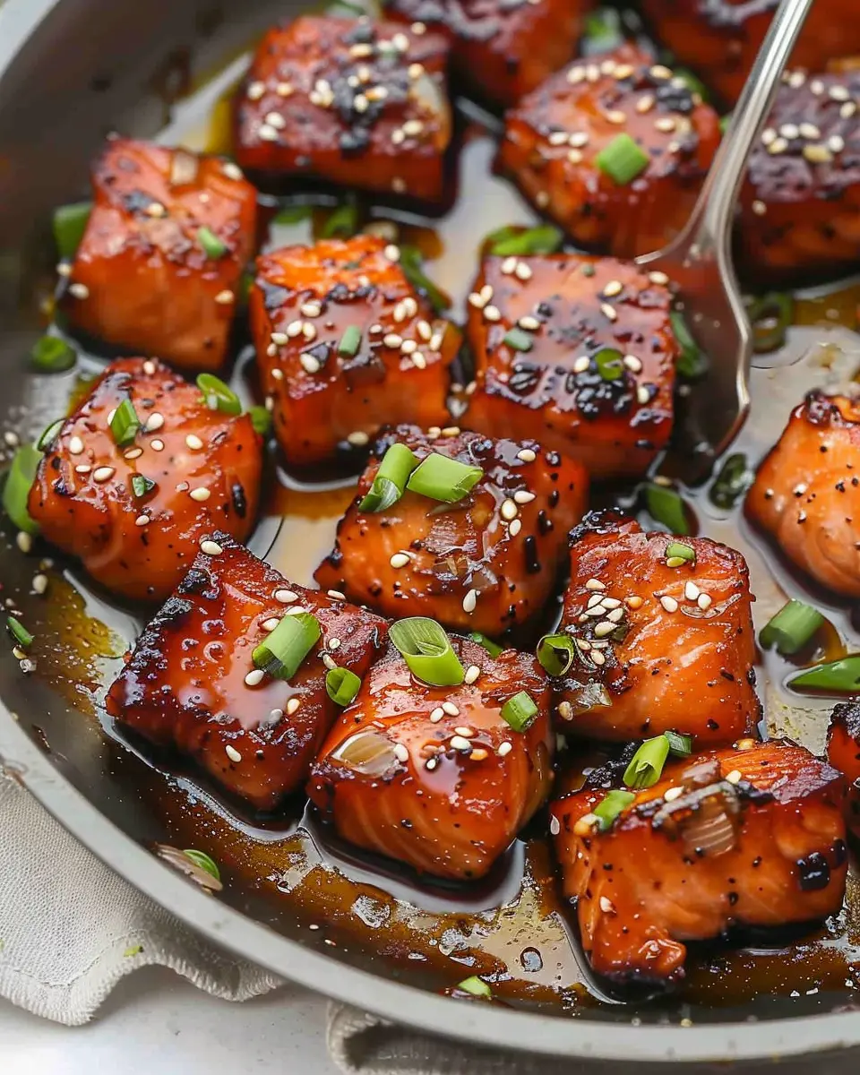 PrintHoney Garlic Salmon Bites: Easy, Delicious, and Homemade Treats