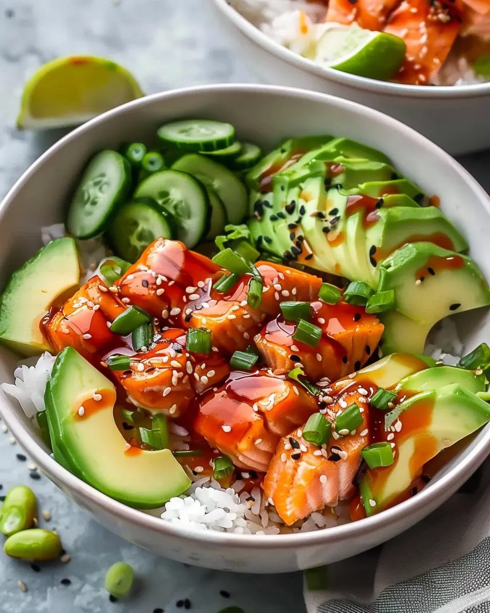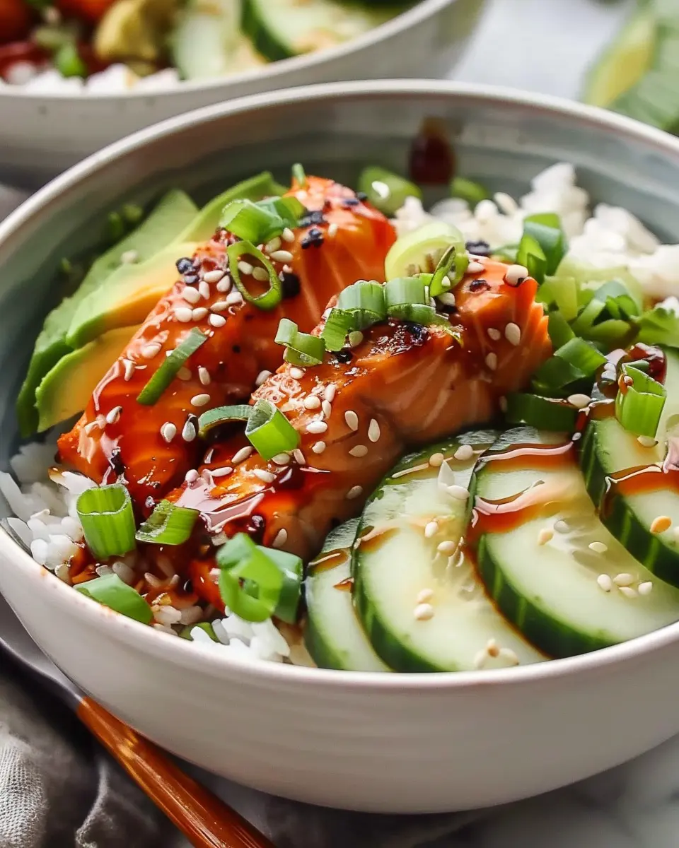With your salmon perfectly cooked, itโ€™s time to build your Honey Sriracha Salmon Bowls! Hereโ€™s what you can include for a complete, satisfying meal: