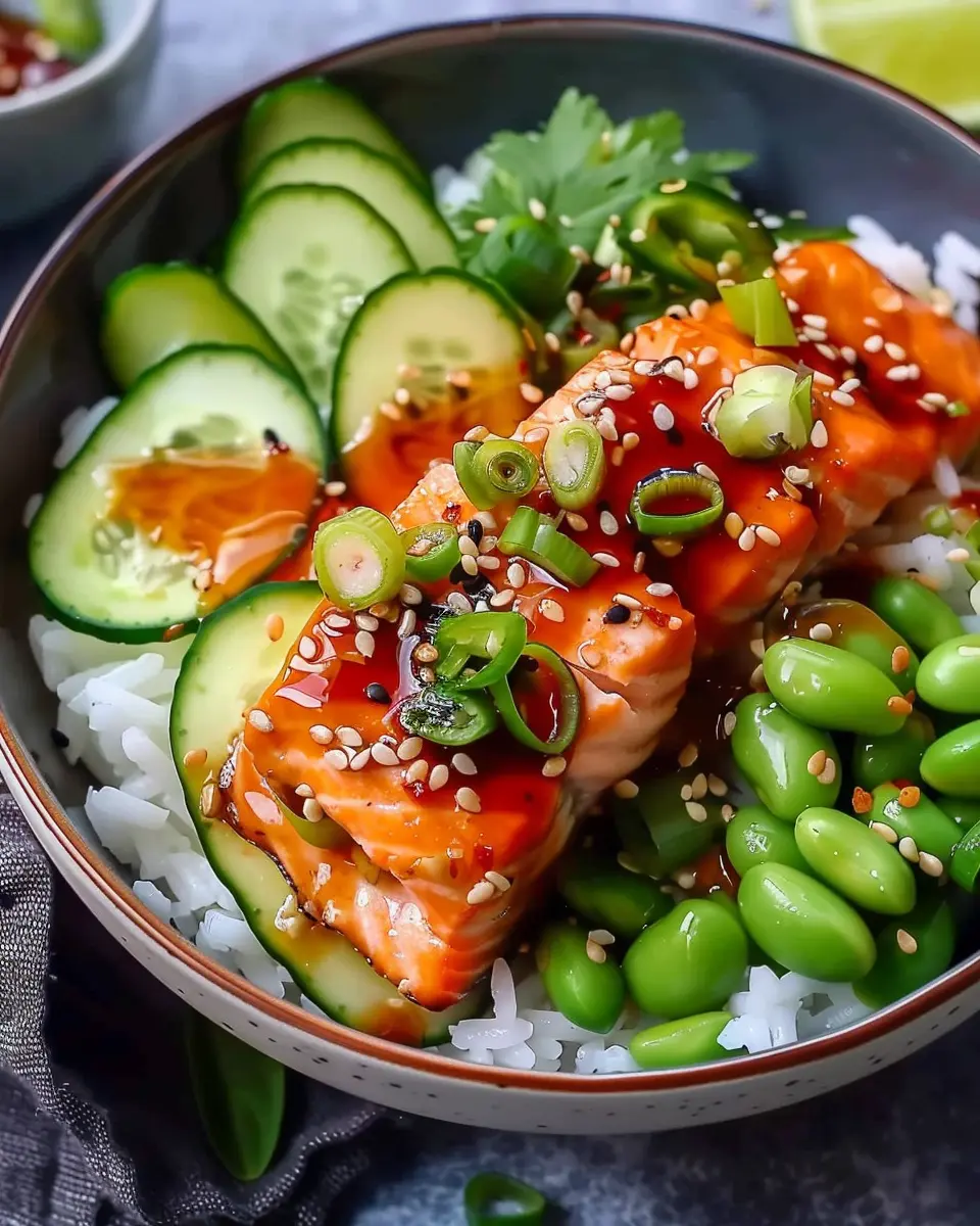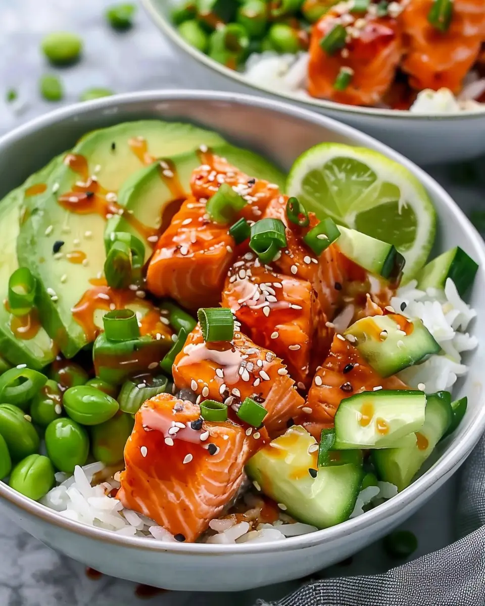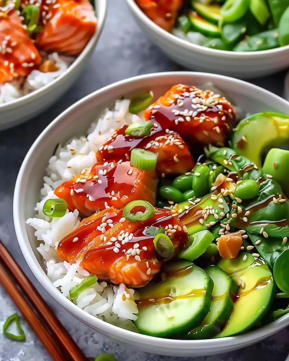 - Meal Prep Friendly: Planning your meals for the week? These bowls are perfect for meal prep! You can cook the salmon and rice in advance, store them in individual containers, and mix and match with toppings throughout the week for a variety of flavors.
