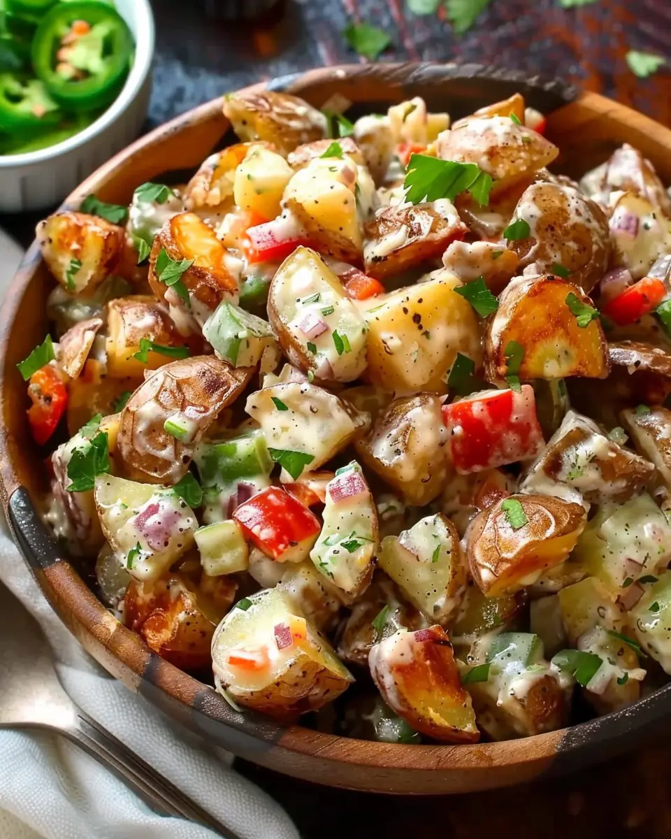 In summary, jalapeno popper roasted potato salad is a delightful twist on traditional potato salad. The combination of creamy textures and spicy jalapenos will elevate your gatherings and casual meals alike. Whether youโ€™re prepping for a summer BBQ or looking for a comforting dish during cooler months, this salad is guaranteed to impress.