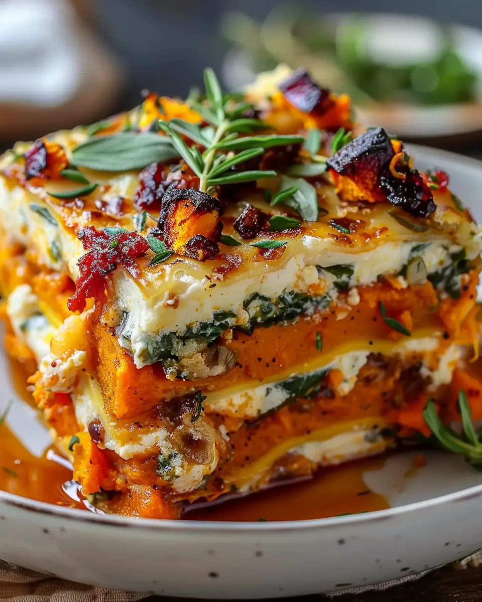 A delightful recipe layering sweet potatoes, butternut squash, and carrots for a wholesome lasagna.