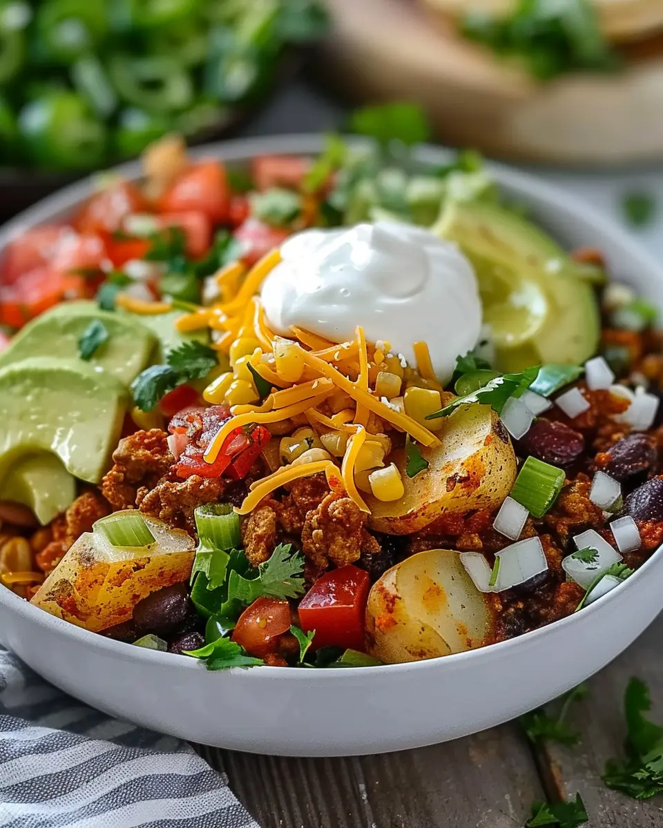 Creating the perfect Loaded Potato Taco Bowl is all about using fresh, vibrant ingredients. Hereโs what youโll need to make this dish burst with flavor: