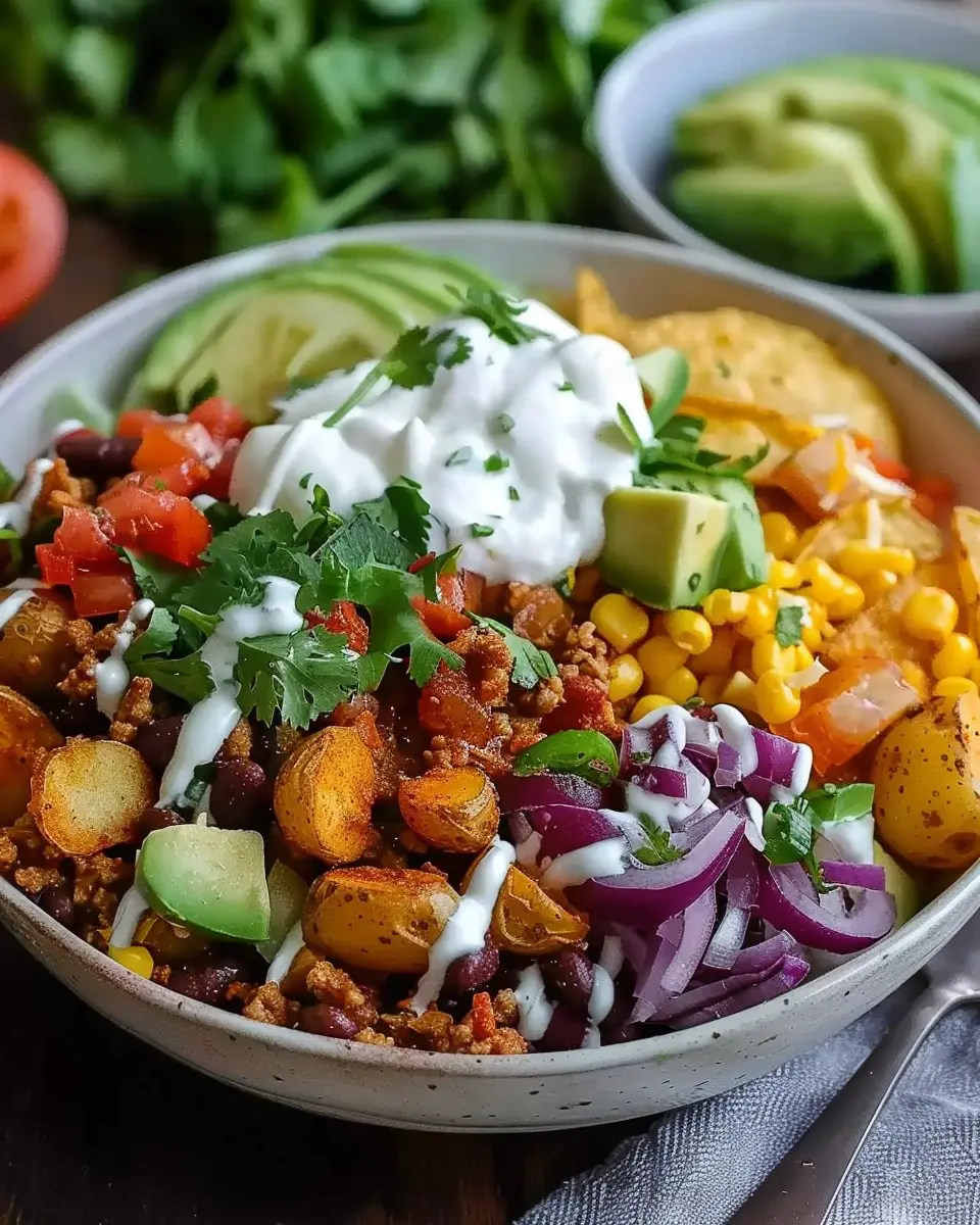 Whether youโre hosting a dinner party or just treating yourself to a satisfying meal, this Loaded Potato Taco Bowl is sure to be a hit! Happy cooking!