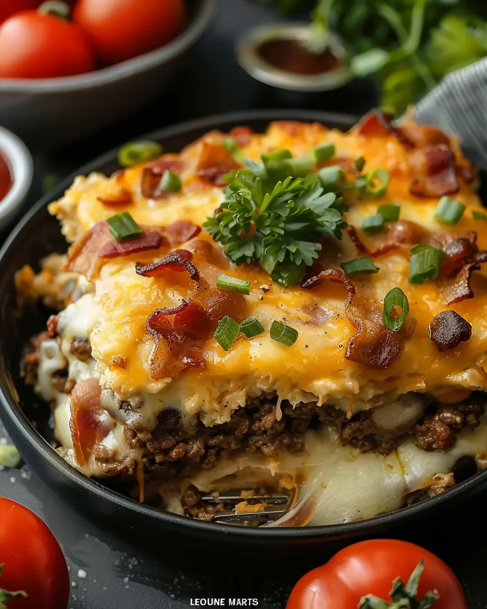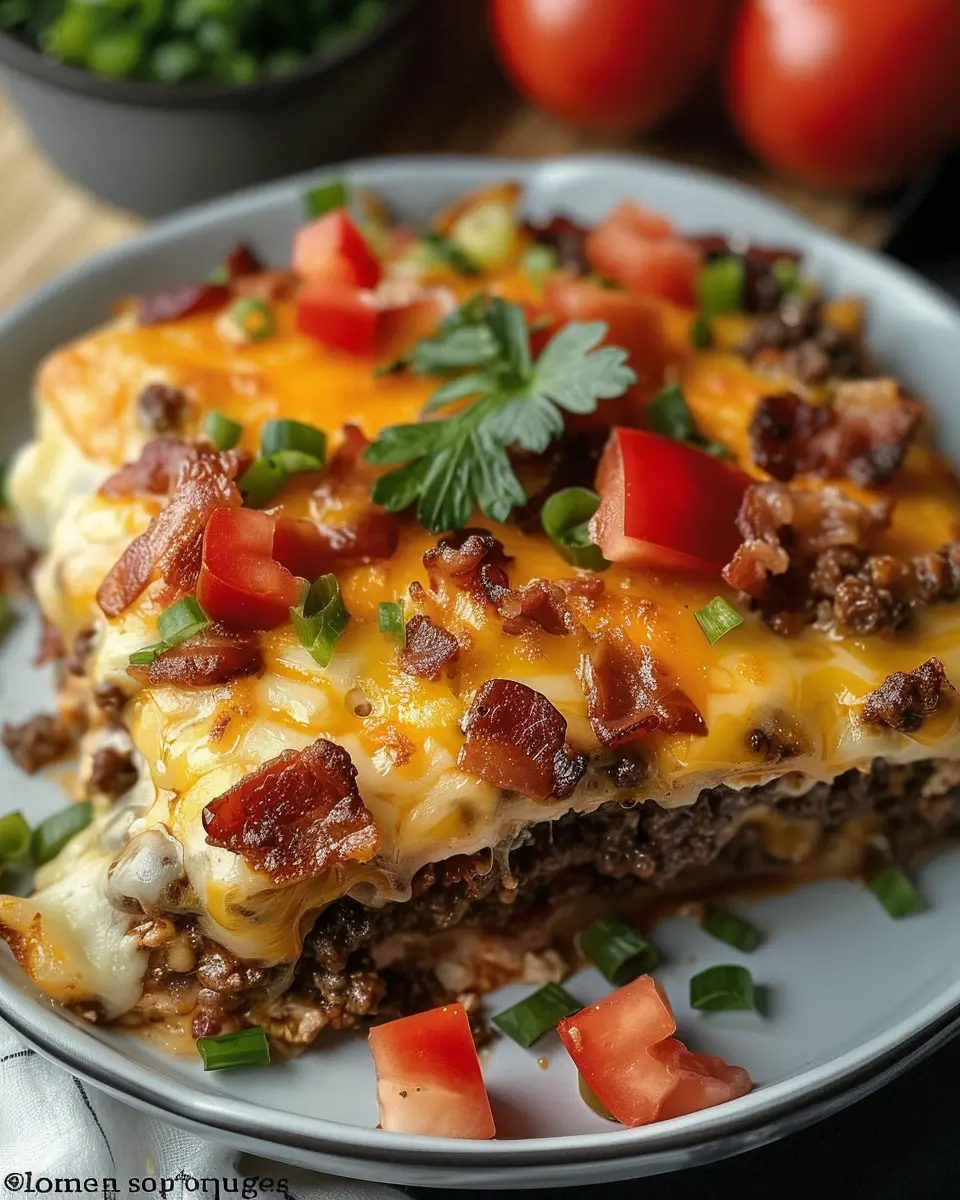 Feel free to get creativeโcolorful garnishes make any dish more appealing and can make your low-carb bacon cheeseburger casserole a visual feast. For more inspiration, check out these garnishing techniques to truly impress at your next meal!