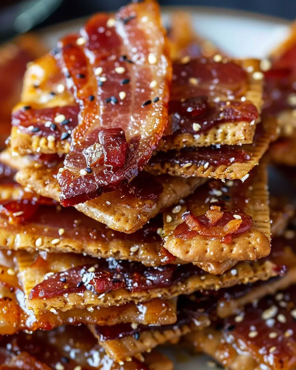 Maple Candied Bacon Crackers are the ultimate indulgent snack, blending the sweetness of maple with the savory crunch of bacon on a crispy cracker.