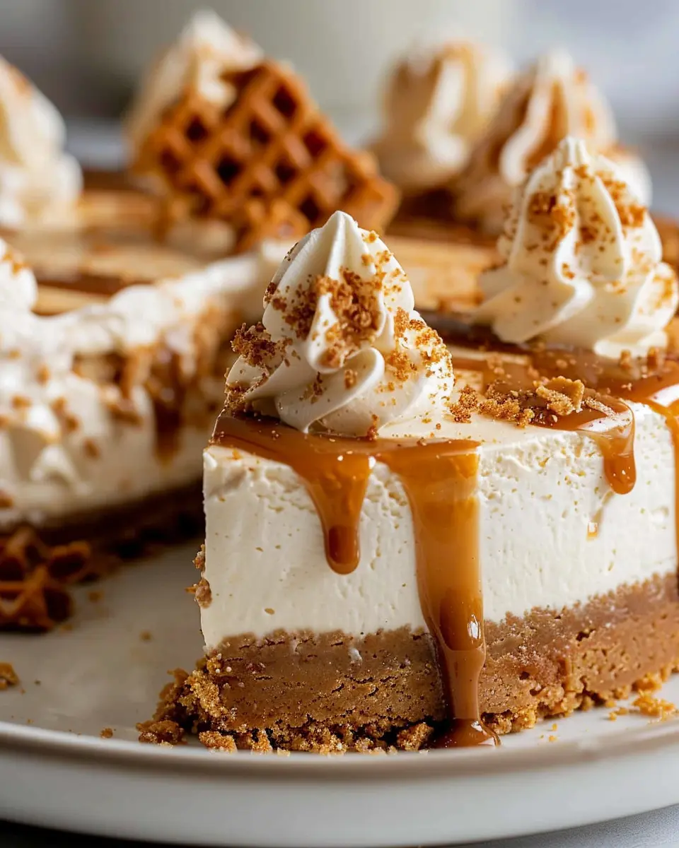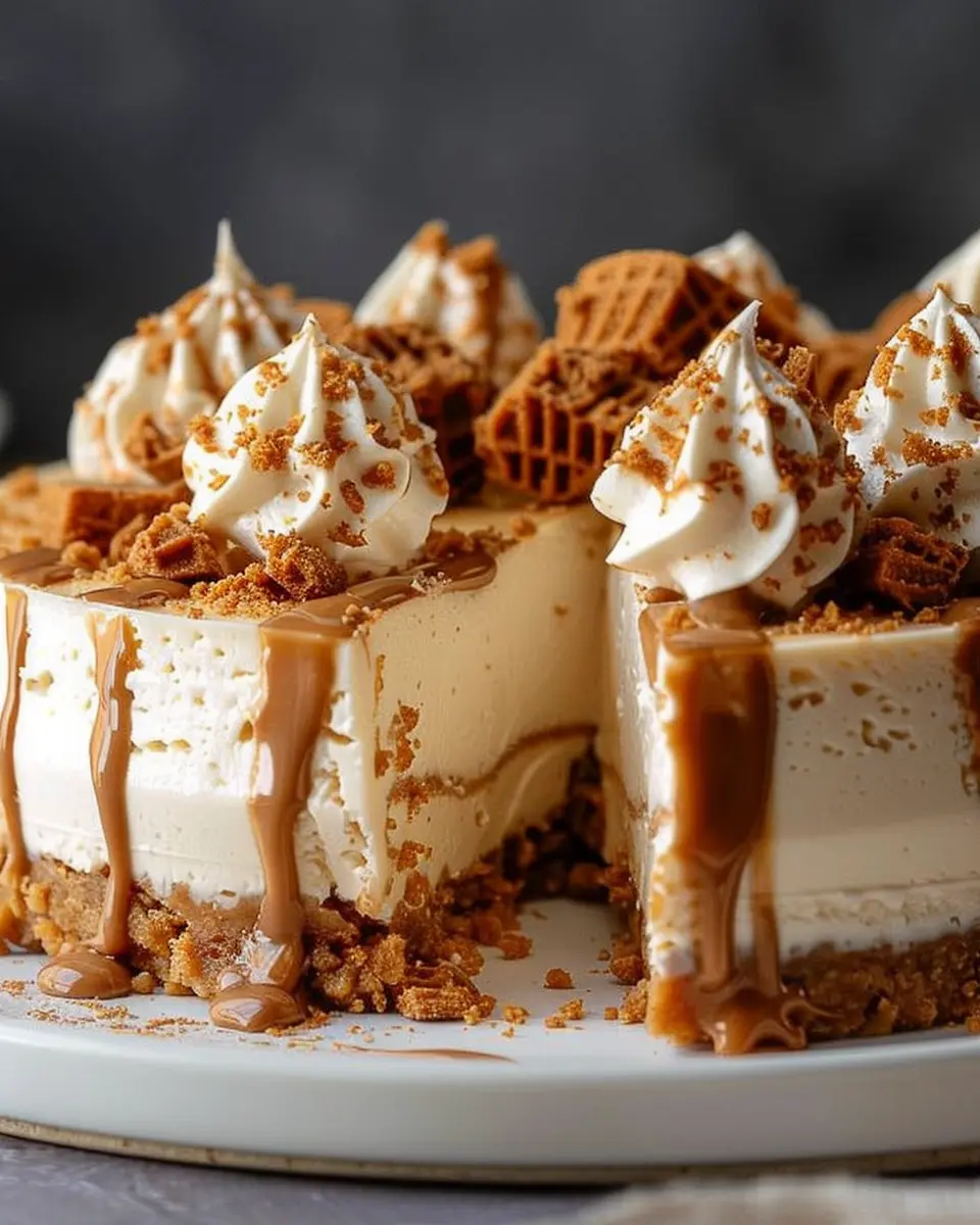 A decadent no-bake Biscoff cheesecake that combines creamy cheesecake filling with a crunchy Biscoff cookie crust.