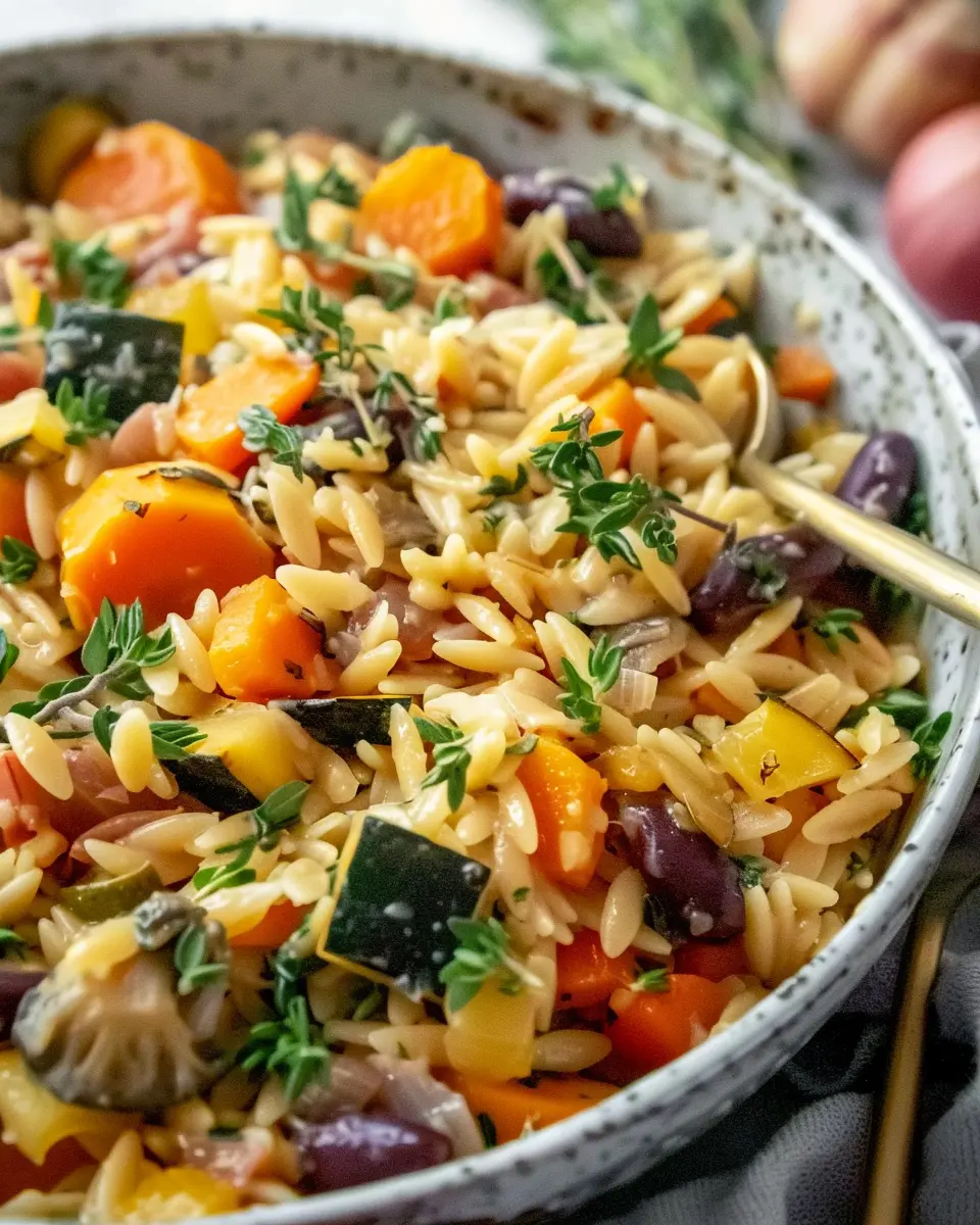 Just before serving, stir in about half a cup of grated Parmesan cheese (or your favorite dairy-free alternative) for richness. Top it off with freshly chopped herbs like parsley or basil for an aromatic finish. These final touches are what make your one pot fall vegetable orzo not just a meal but a masterpiece.