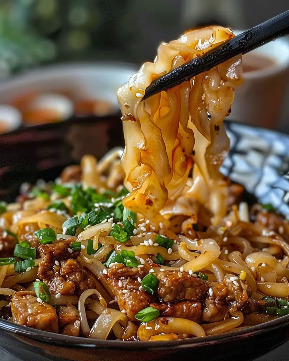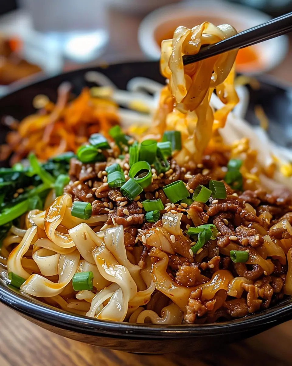 Once the beef is fully cooked, add your noodles to the skillet. If you’re using dried noodles, ensure they’re cooked per package instructions beforehand. Once they’re evenly combined, pour in your soy sauce, sesame oil, and chili sauce. These sauces bring the flavor profile of your Potsticker Noodle Bowl to life, so feel free to adjust the amount based on your taste preferences.