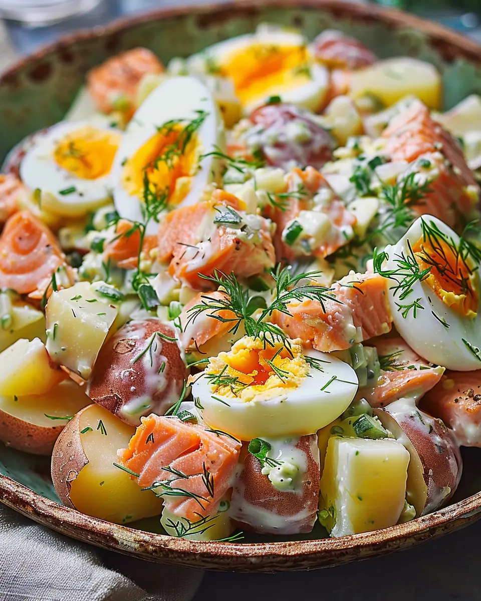 PrintRussian Salmon Potato Salad Eggs: The Best Healthy Twist