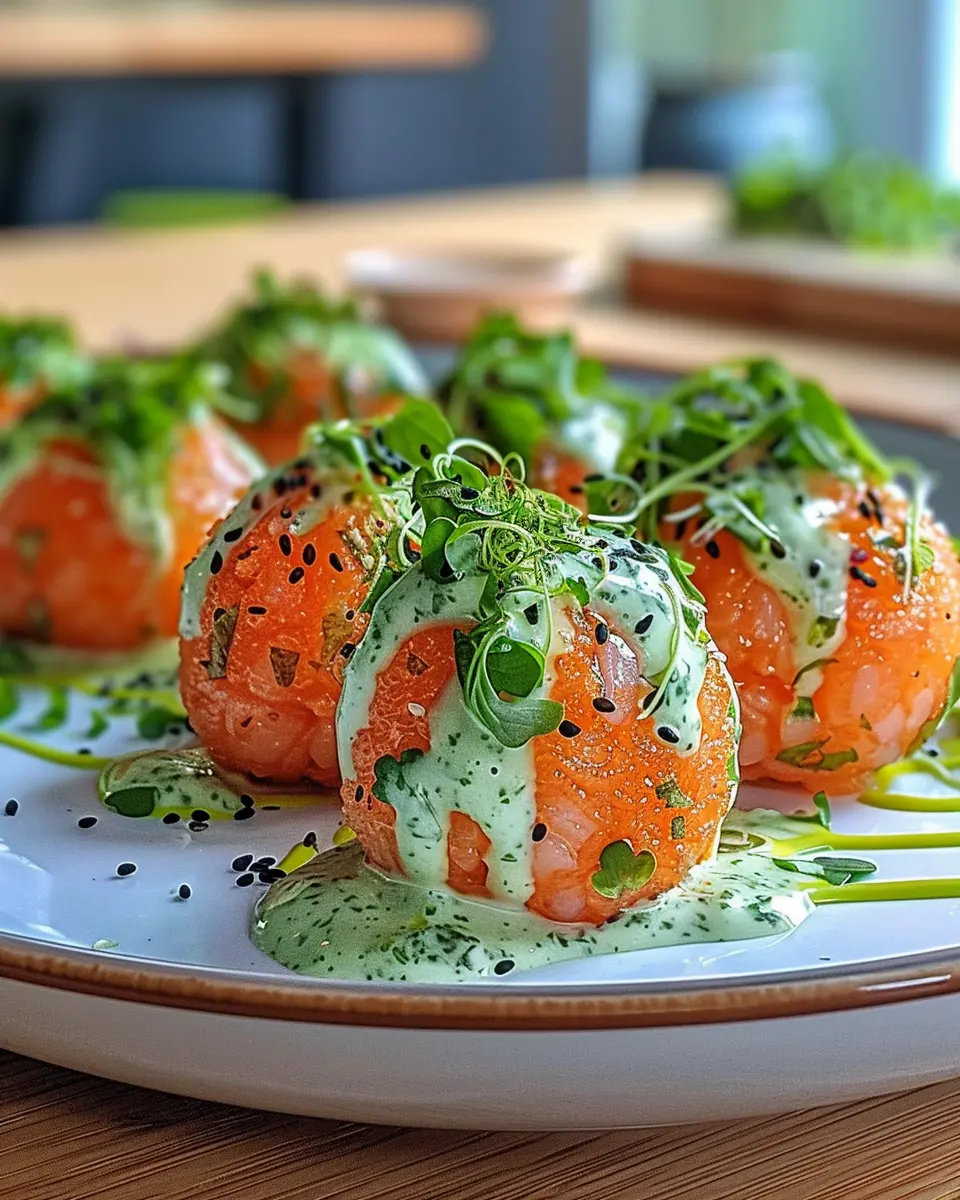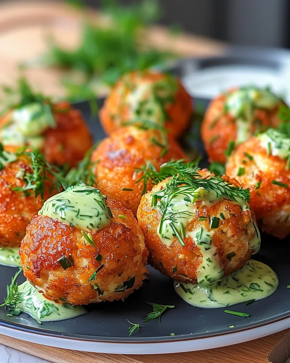 Pair your salmon balls with a variety of dips. A zesty lemon-dill yogurt sauce or a creamy avocado dip can elevate their taste. Alternatively, a homemade tartar sauce brings a classic touch to your dish. Want to get creative? You can try a sriracha mayo for an extra kick!