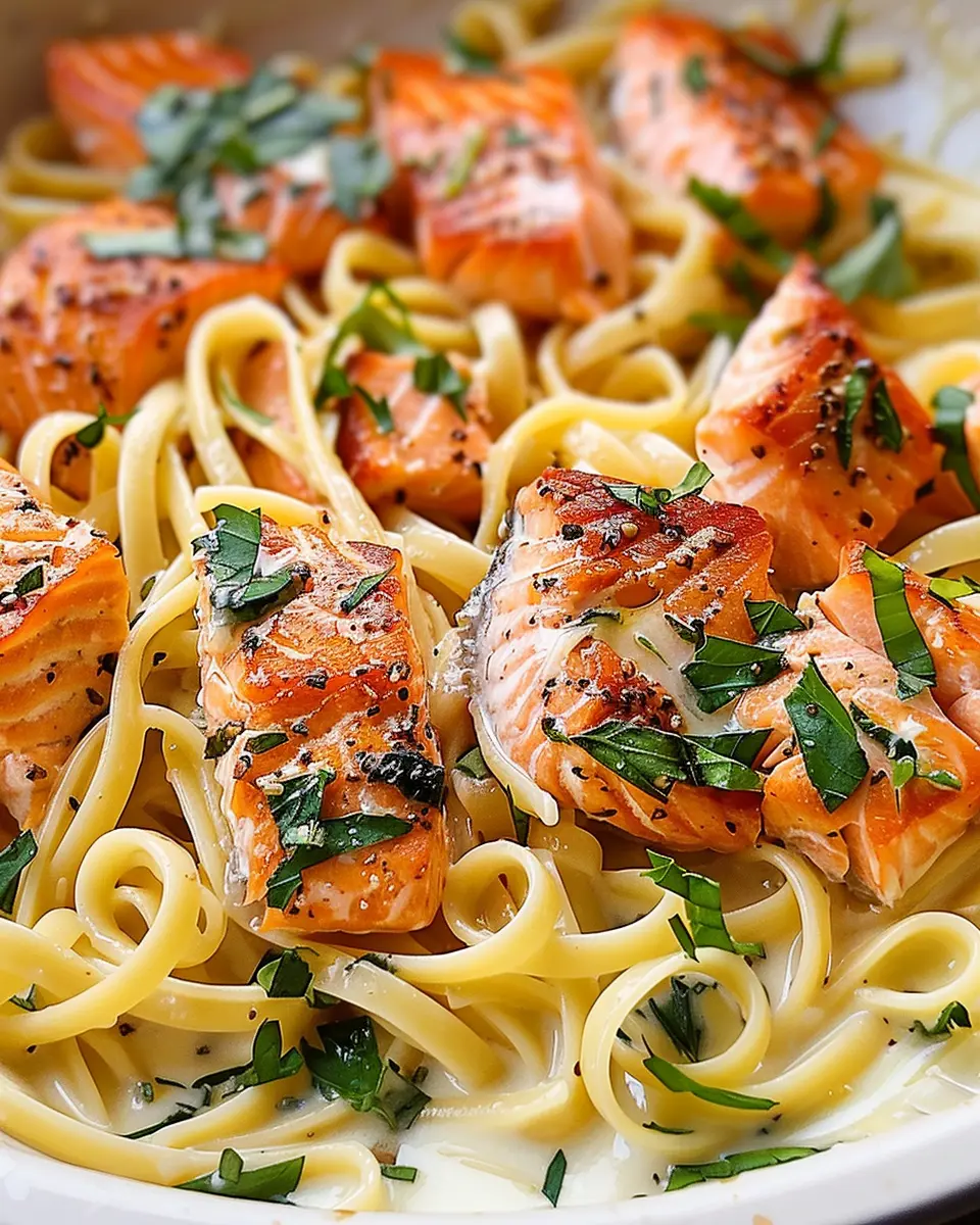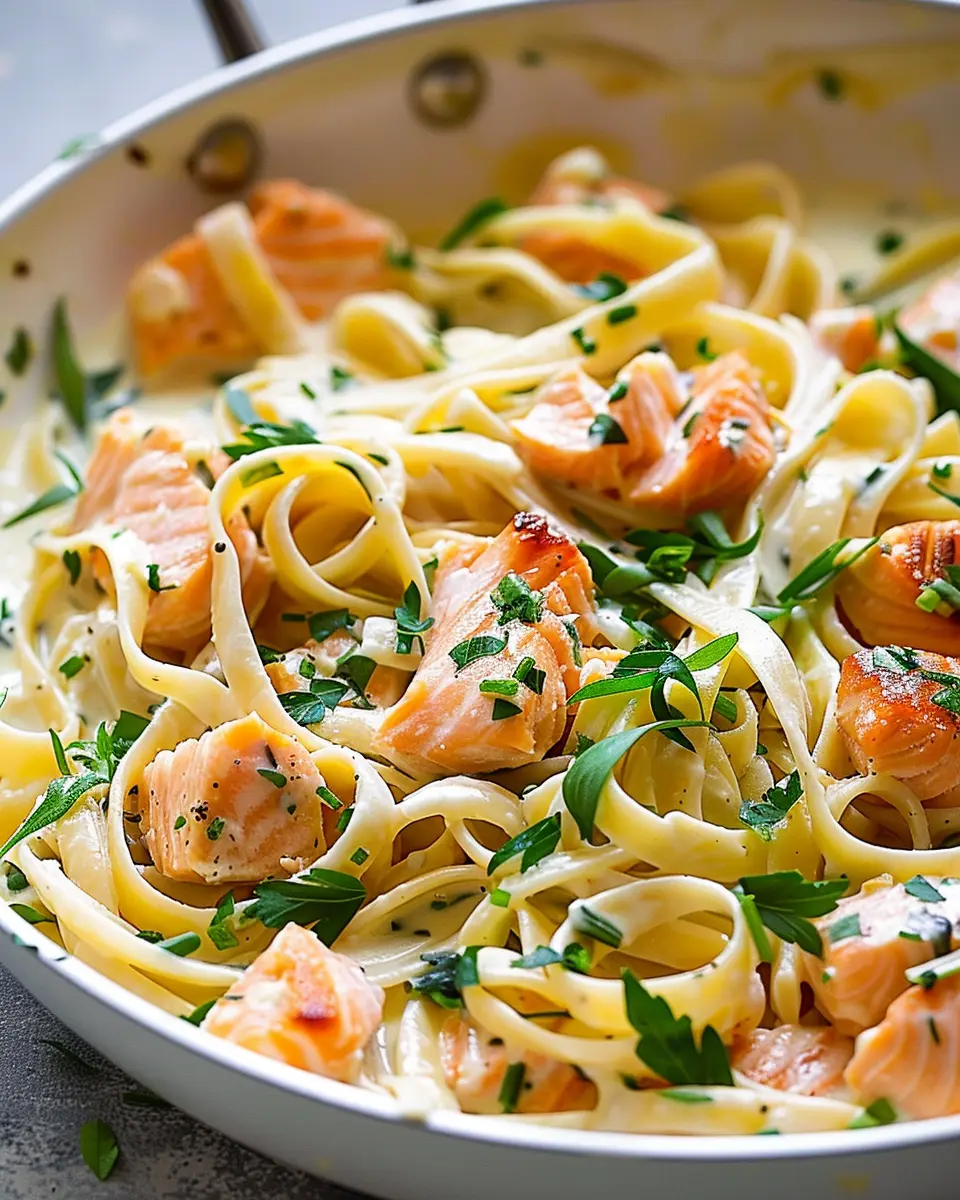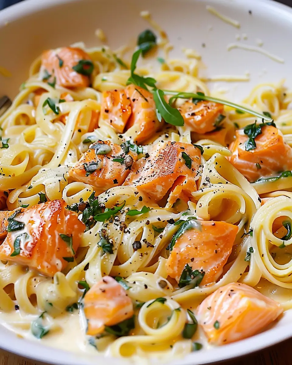 A delicious and easy salmon pasta recipe thatโs perfect for busy weeknights, combining the rich flavors of salmon with creamy sauce.