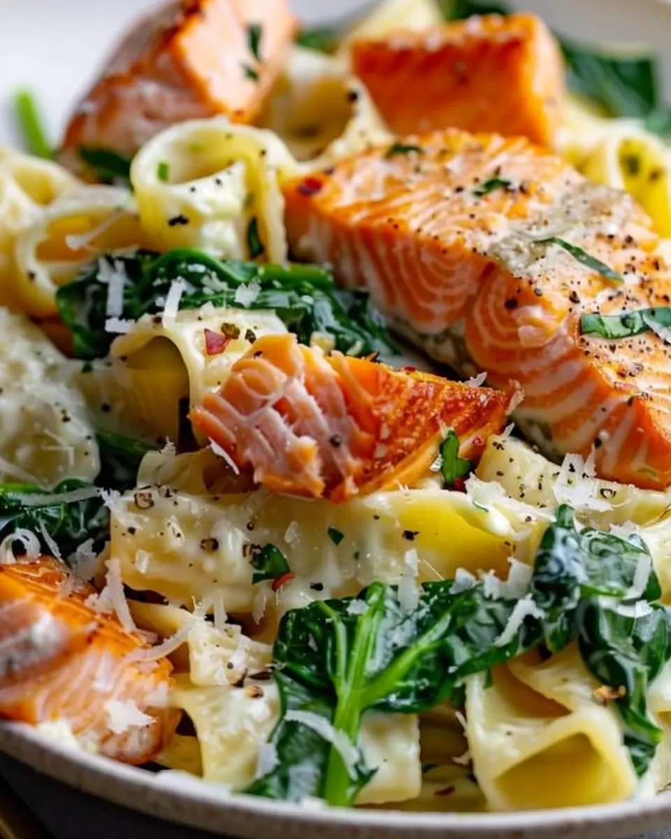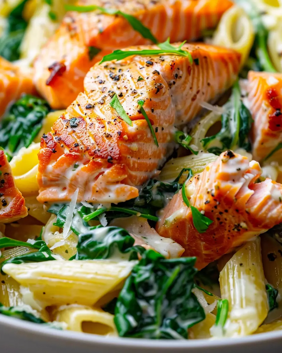 PrintSalmon Spinach Pasta Dish: Easy and Delicious Family Favorite