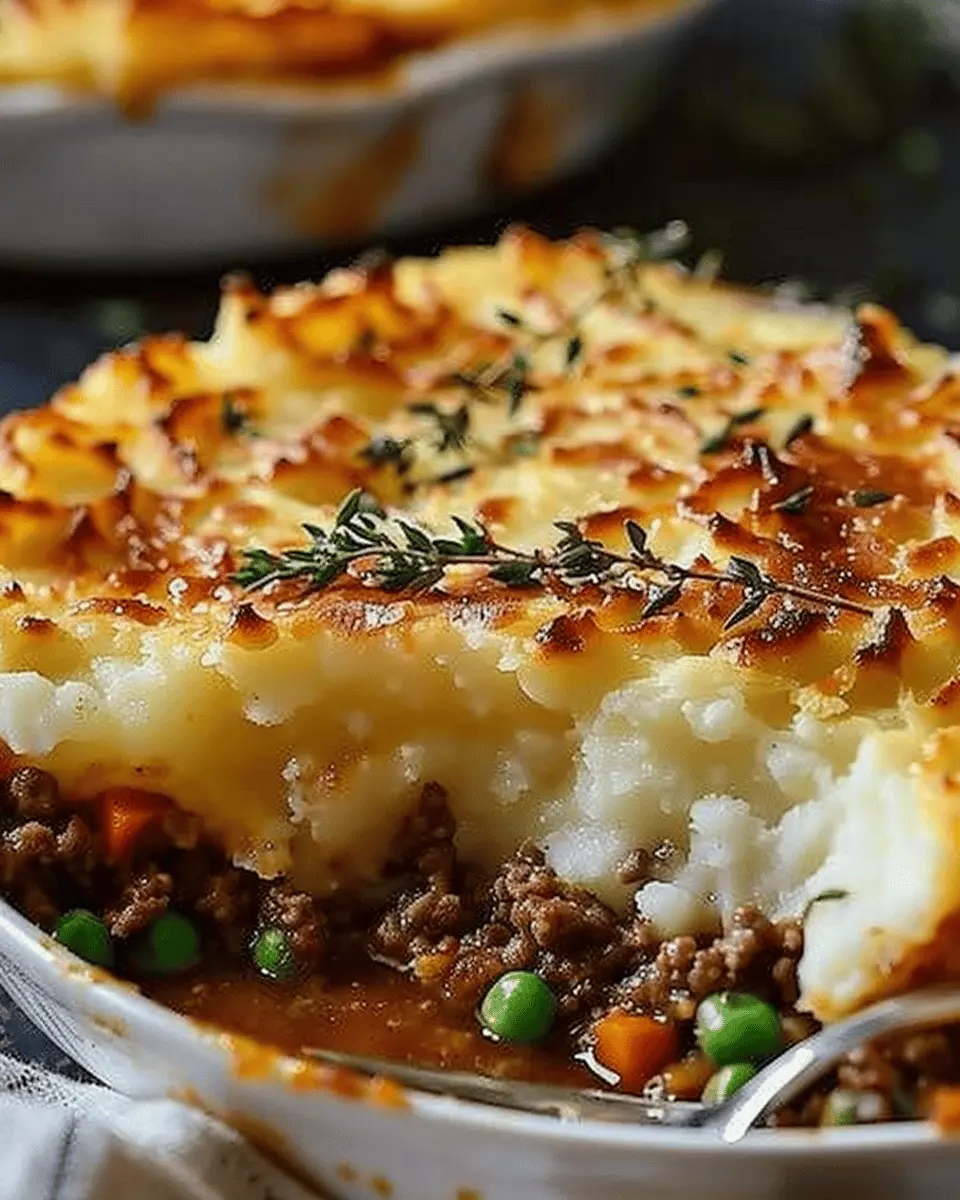 A hearty and delicious Shepherd’s Pie made with ground beef, topped with creamy mashed potatoes.