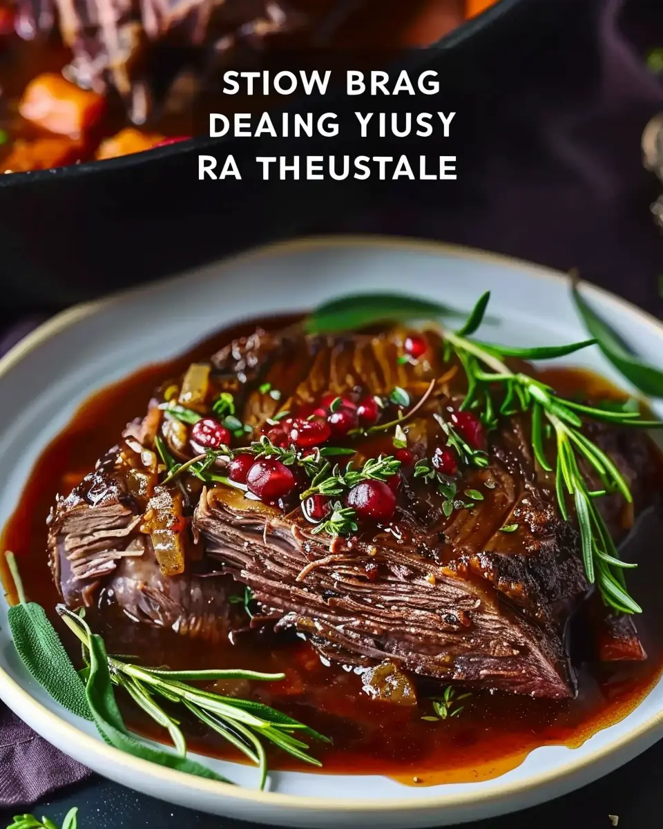 For a unique twist that adds both sweetness and a pop of color, toss in your cranberries. Their tartness complements the richness of the beef beautifully. Next, add your fresh thyme and rosemary sprigs to infuse the dish with aromatic goodness. This combination elevates your slow-braised beef roast from great to unforgettable.
