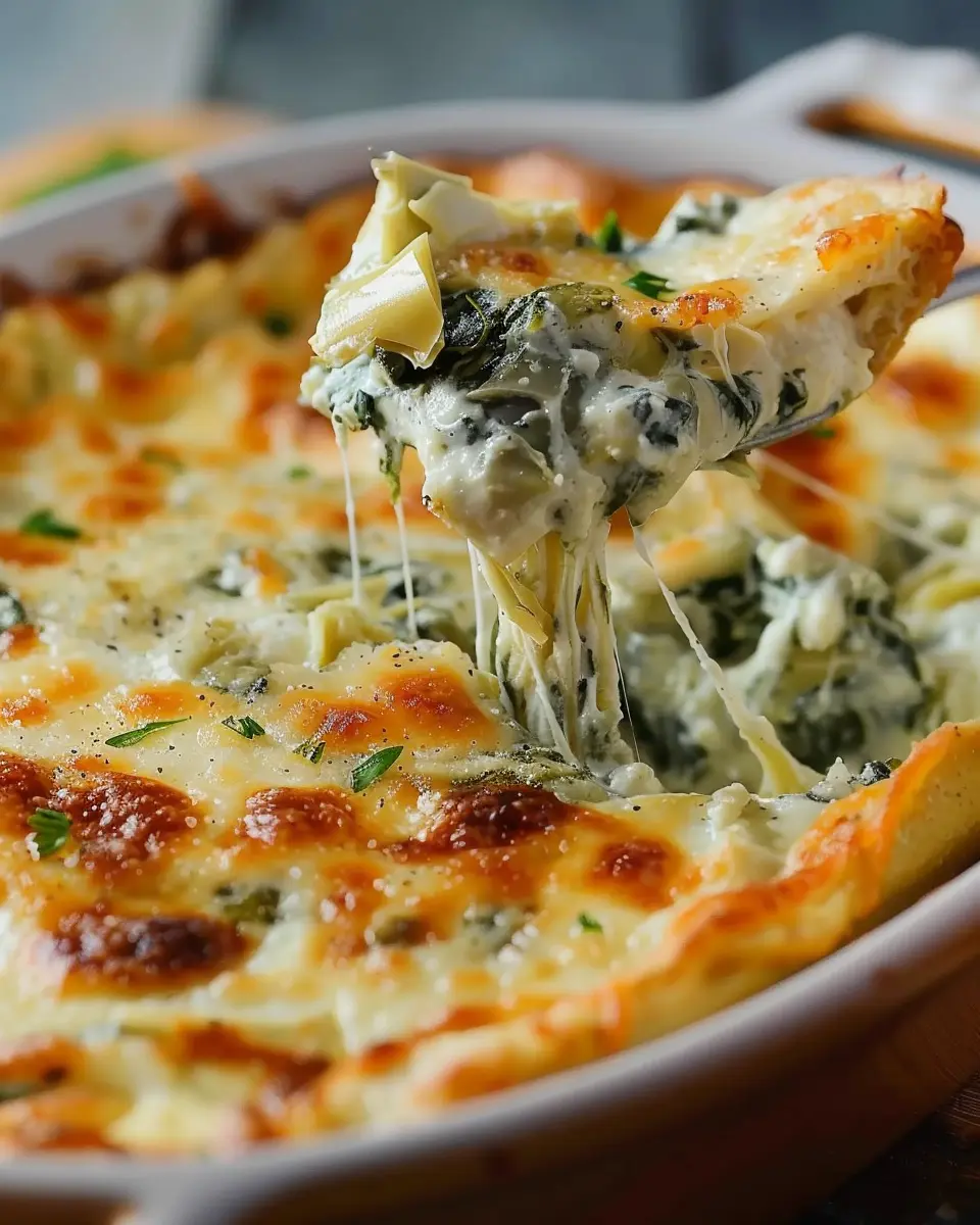 Absolutely! One of the best features of this Tasty Baked Spinach Artichoke Dip is that it can be prepared in advance. Simply mix all your ingredients and transfer them to your baking dish. Cover it with plastic wrap and refrigerate for up to 24 hours. When youโre ready to serve, just pop it in the oven and bake until bubbly. It’s a perfect party solution!