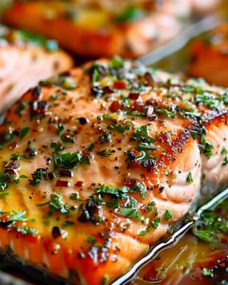 Now comes the fun part: garnishing! Squeeze fresh lemon juice over the top and sprinkle with chopped fresh parsley or green onions for a pop of color and flavor. Serve it hot, and watch everyone’s eyes light up at the sight of this beautifully baked salmon โ itโs truly a feast for both the eyes and the palate.